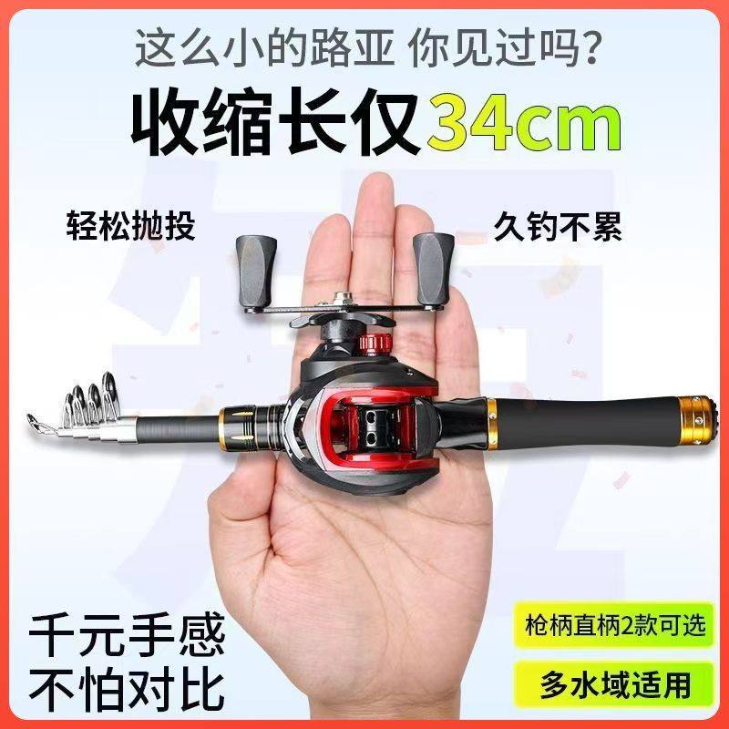 新款超短迷你伸缩路亚竿小型鱼竿全套套装海竿路亚竿水滴轮纺车轮