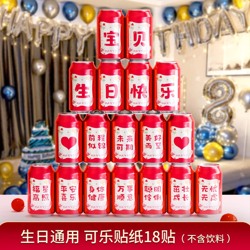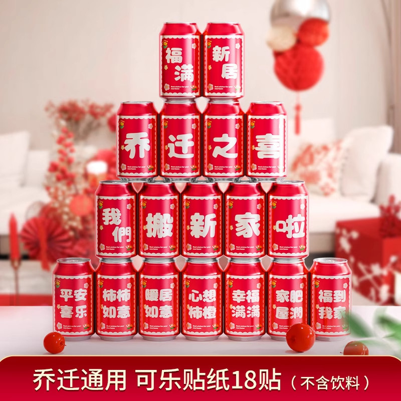 乔迁之喜新款装饰可乐贴纸旺仔易拉罐饮料贴新居布置搬家入宅用品