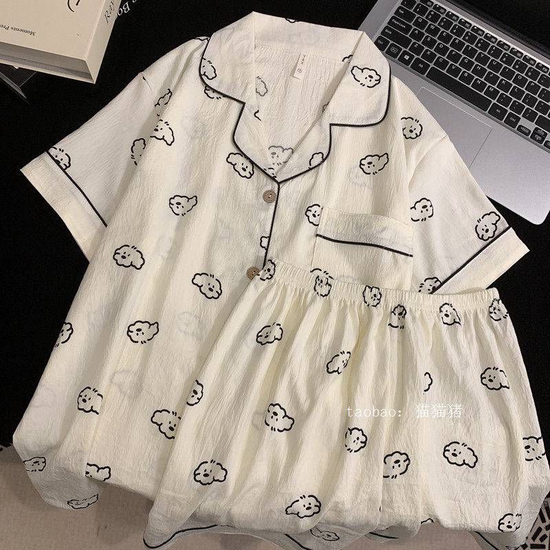 红豆日系小狗睡衣女薄款春夏季可外穿纯棉纱短袖学生家居服棉绸三