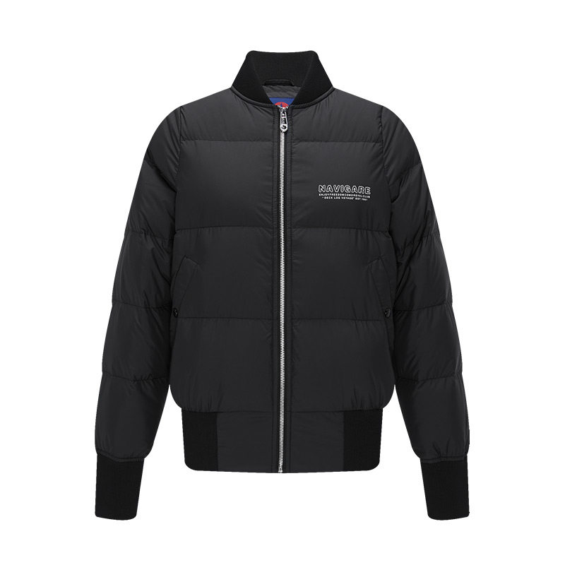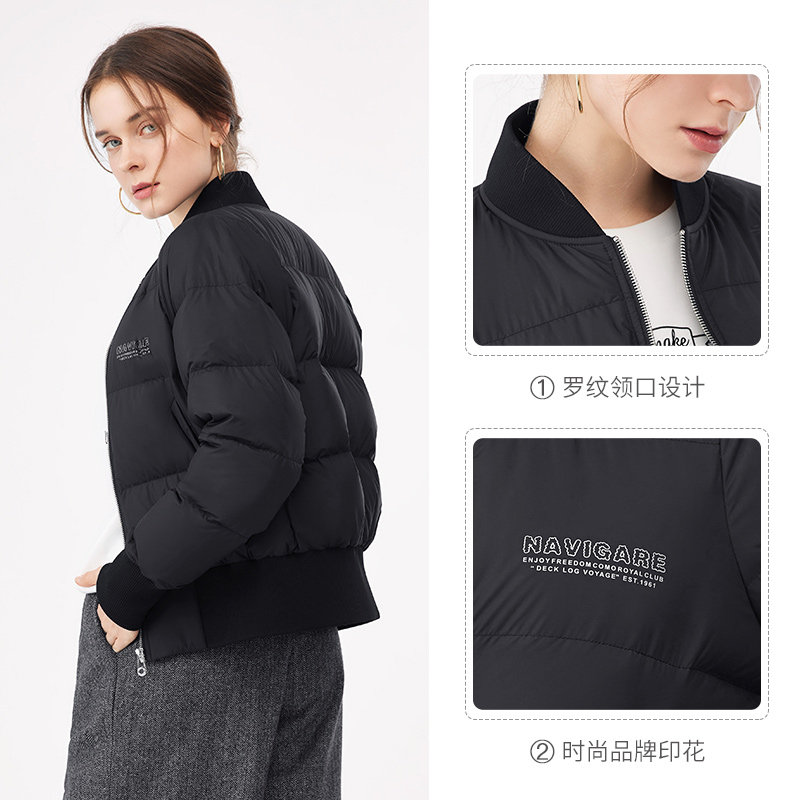 Navigare意大利小帆船黑色立领短款羽绒服女冬季白鸭绒保暖外套