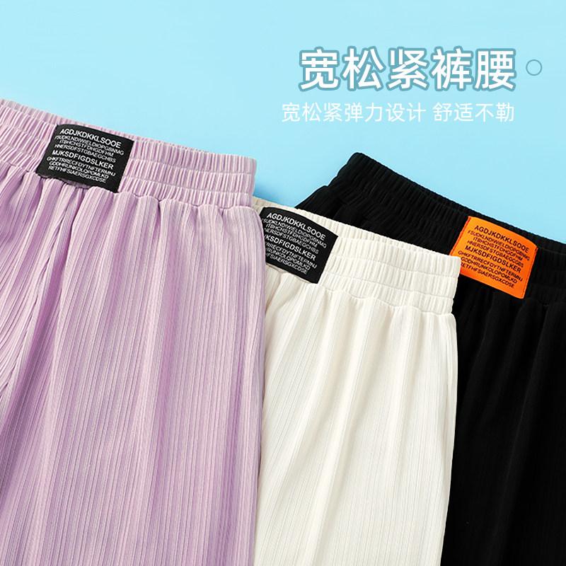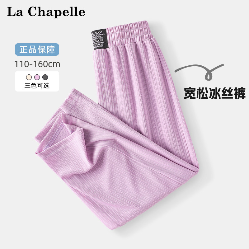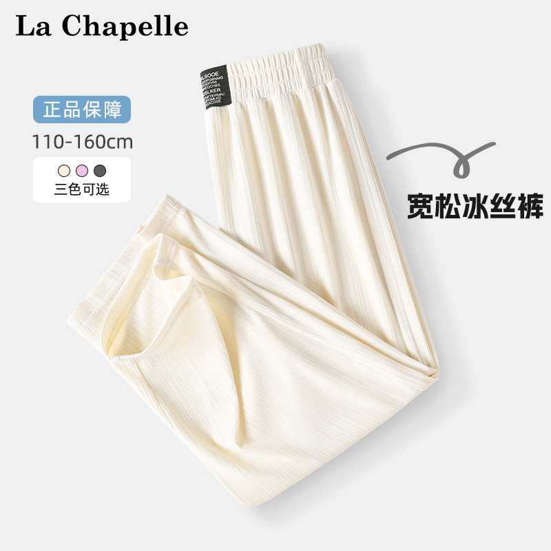 拉夏贝尔女童裤子夏季2025新款儿童防蚊裤中大童冰丝裤阔腿裤长裤