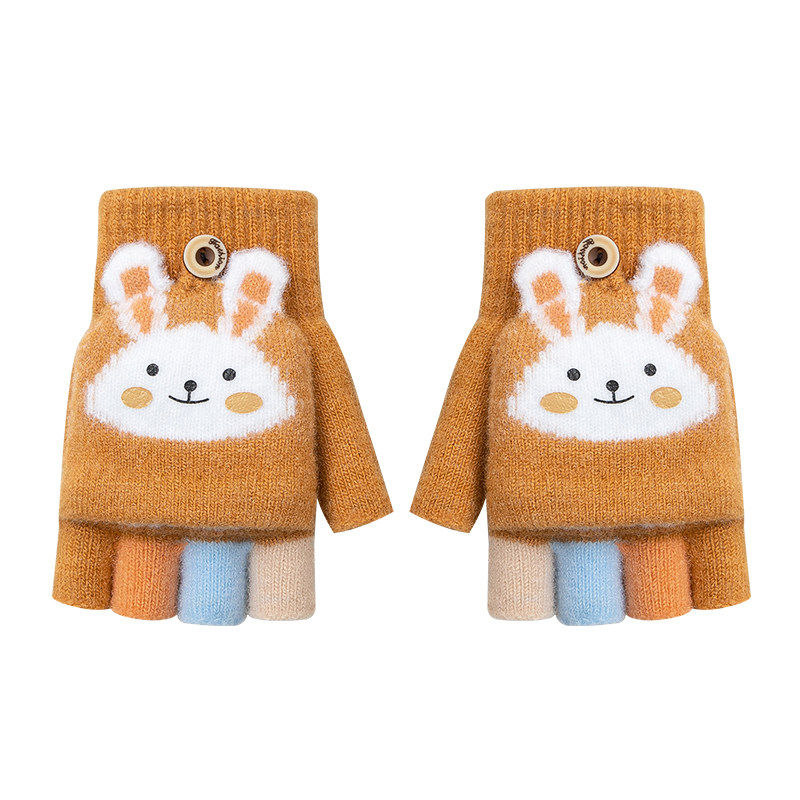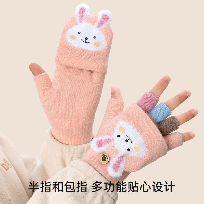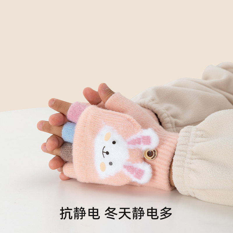 儿童手套女孩冬季冬天五指分指保暖2025新款可爱宝宝女童半指翻盖