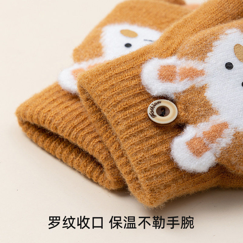 mikko联名可爱卡通猫咪毛绒手套女冬季翻盖半指触屏加厚骑行保暖