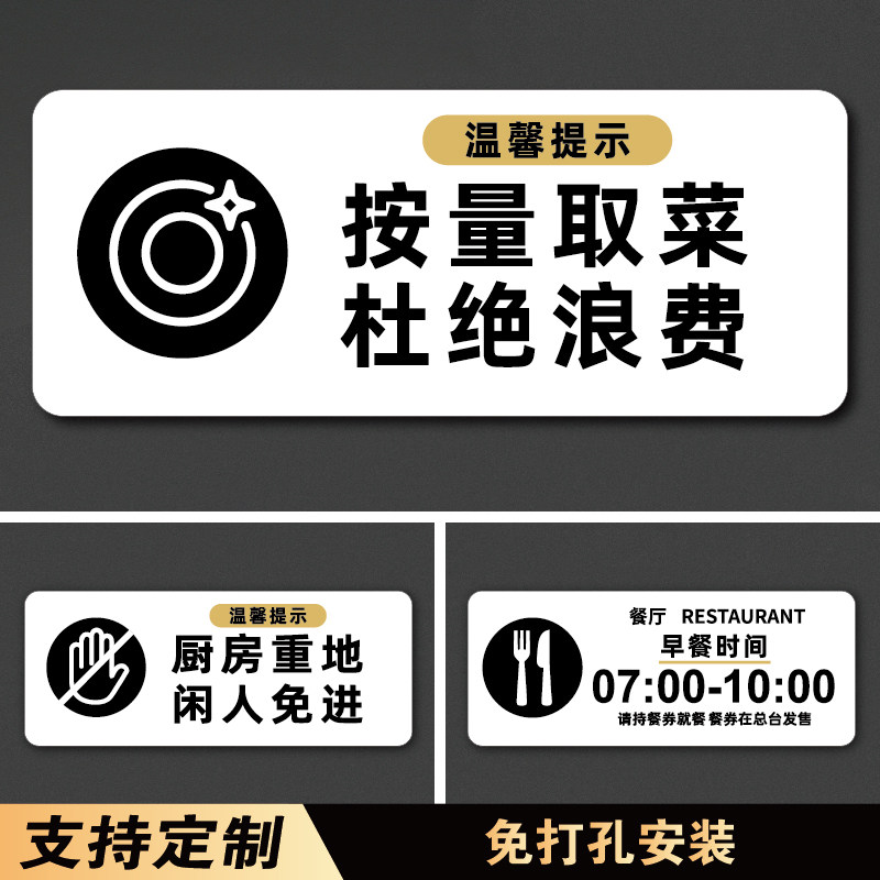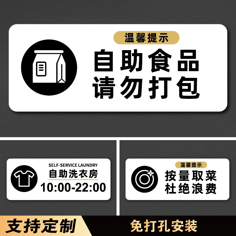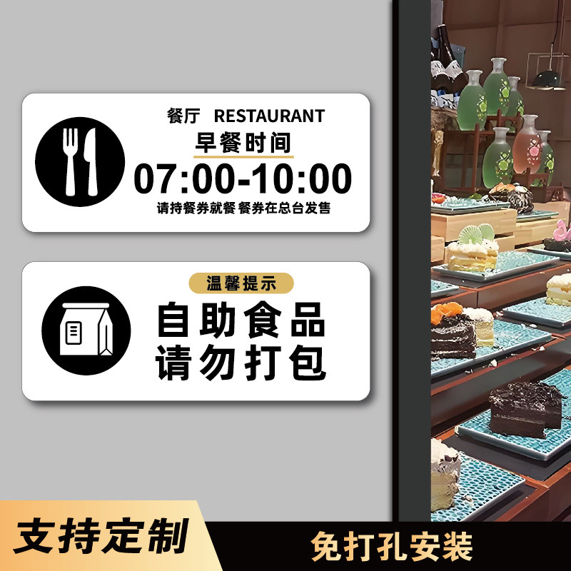 亚克力标识牌定制民宿酒店早餐用餐时间提示牌餐厅持餐券就餐标识牌自助洗衣房时间提醒牌自助食品请勿打包贴