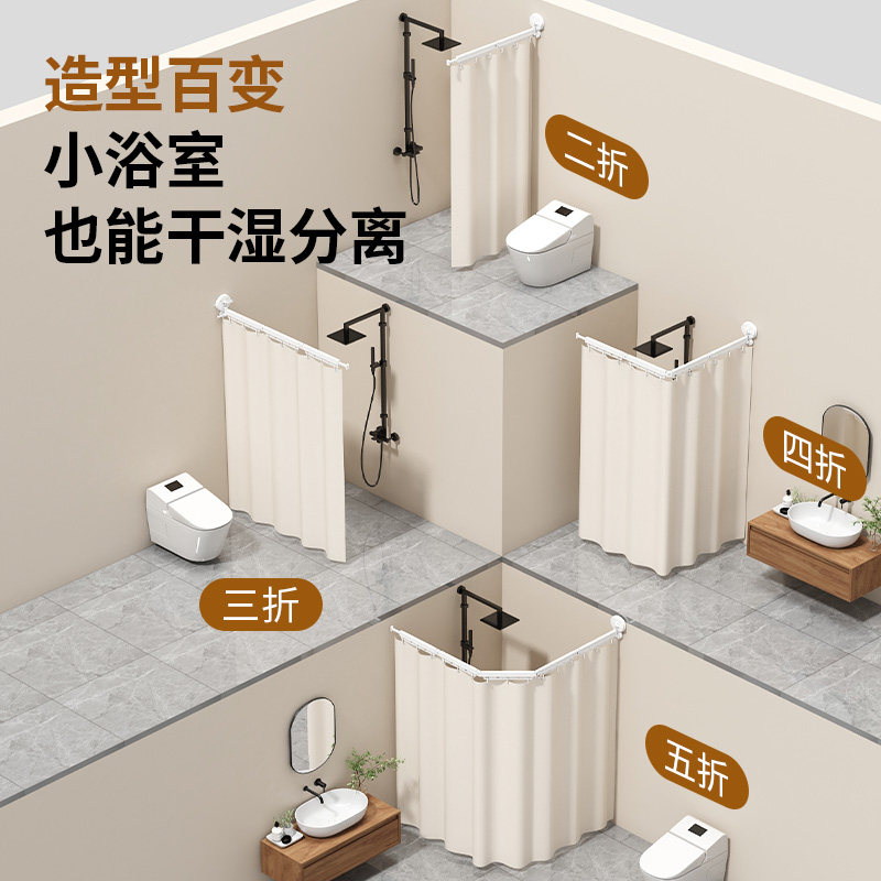 折叠浴帘隐形免打孔浴室洗澡隔断卫生间干湿分离淋浴防水帘挡水