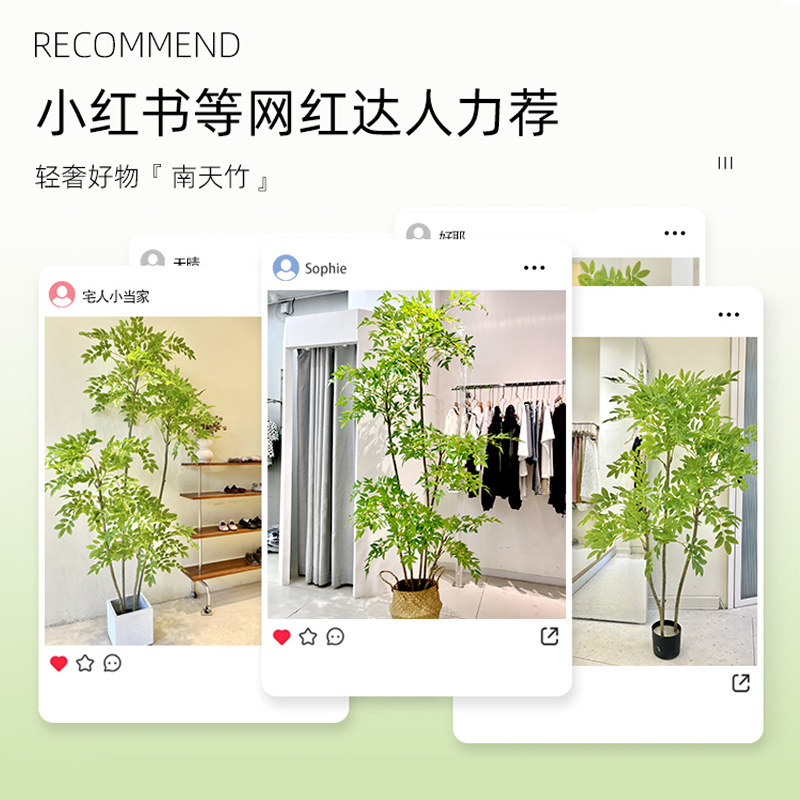 仿真绿植南天竹大型高端客厅假花室内植物装饰落地假盆栽氛围玄关