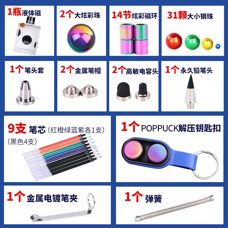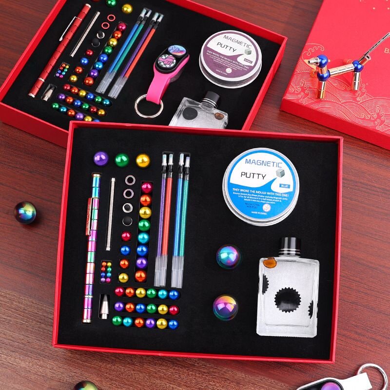多功能黑科技磁力笔中性笔磁泥磁流体钥匙扣解压指尖陀螺文具礼盒