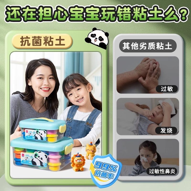 得力儿童超轻粘土无毒幼儿园用橡皮泥彩泥手工玩具食品玩具低年 级24色黏土幼儿园小学生DIY玩具黏土