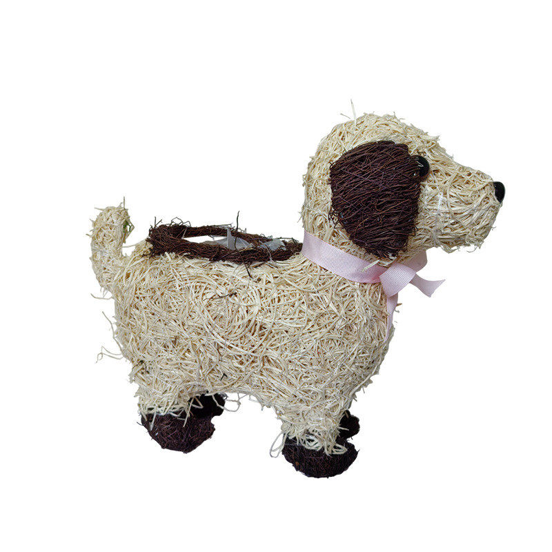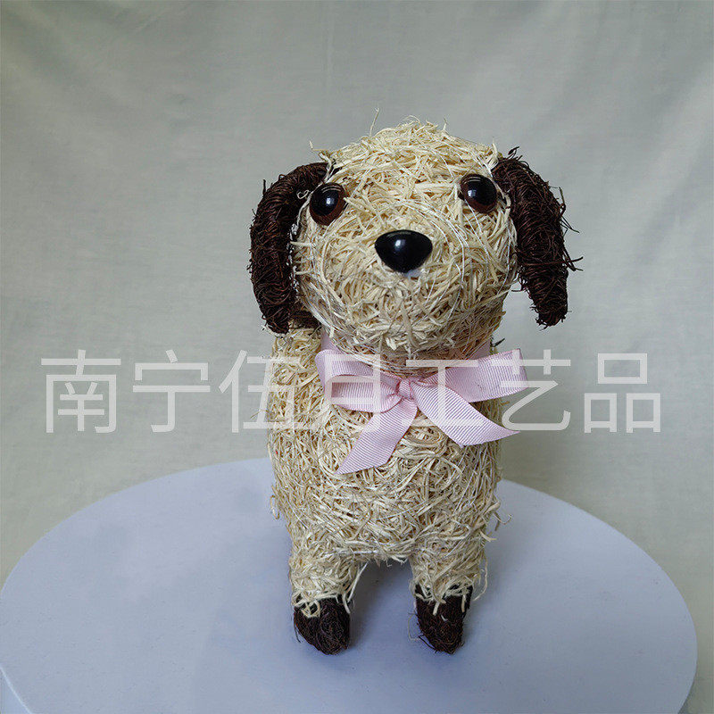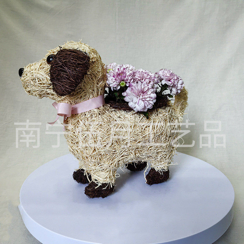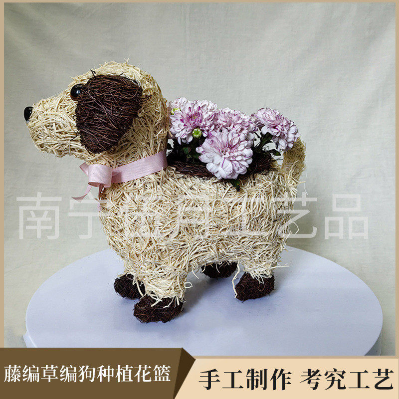 手工藤编动物花篮小狗摆件装饰绿植种植花篮儿童批发厂家仿真花