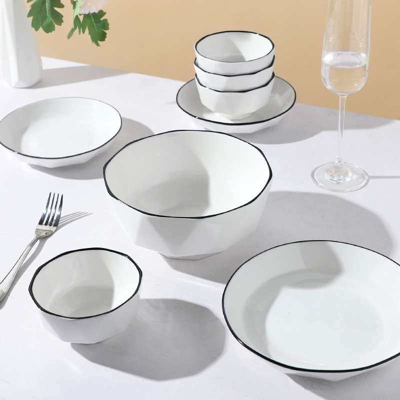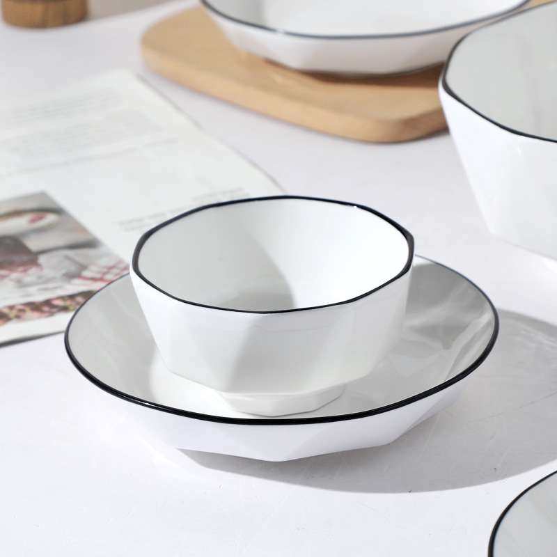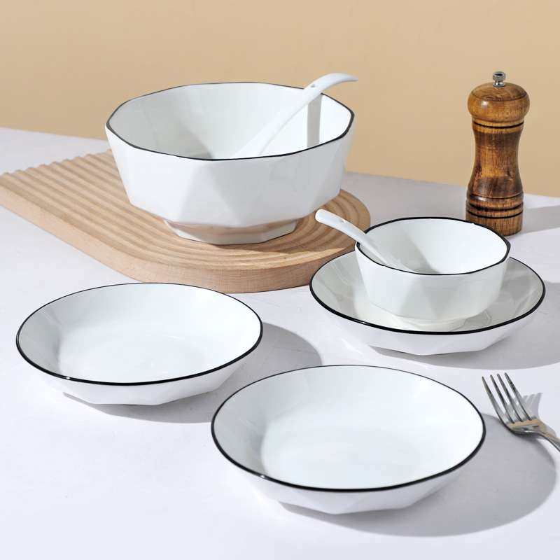 北欧陶瓷餐具家用碗碟套装网红创意钻石米饭碗菜盘子汤盆勺筷途达