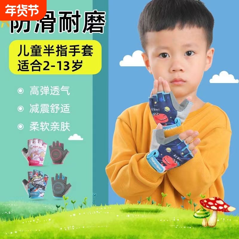 儿童运动半指手套男女童户外防滑平衡车薄款防护骑行大拇指手指