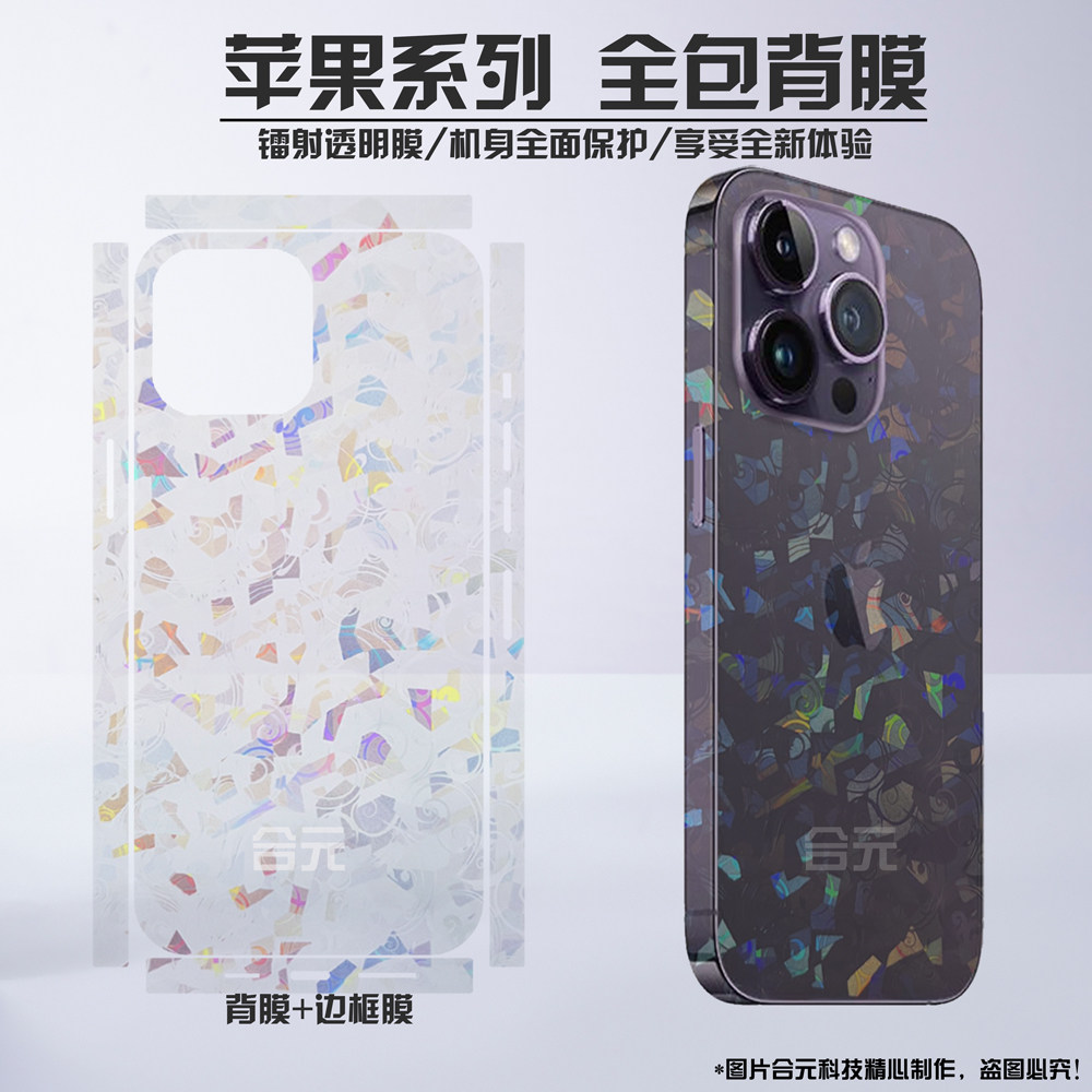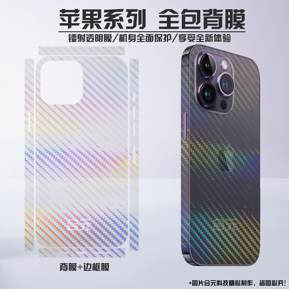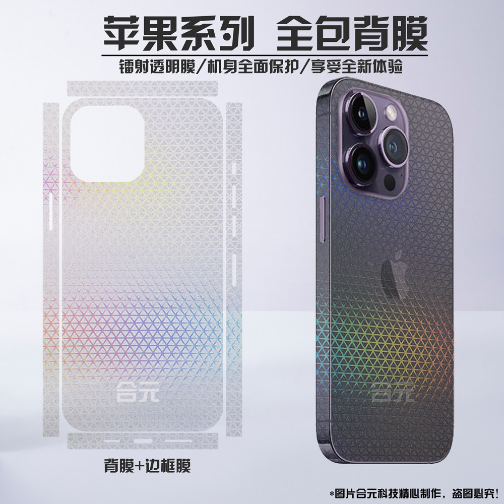 适用iPhone16pro全包背膜15promax镭射苹果14超薄边框膜max镜头贴纸plus散热12透明侧边保护mini后盖保护膜