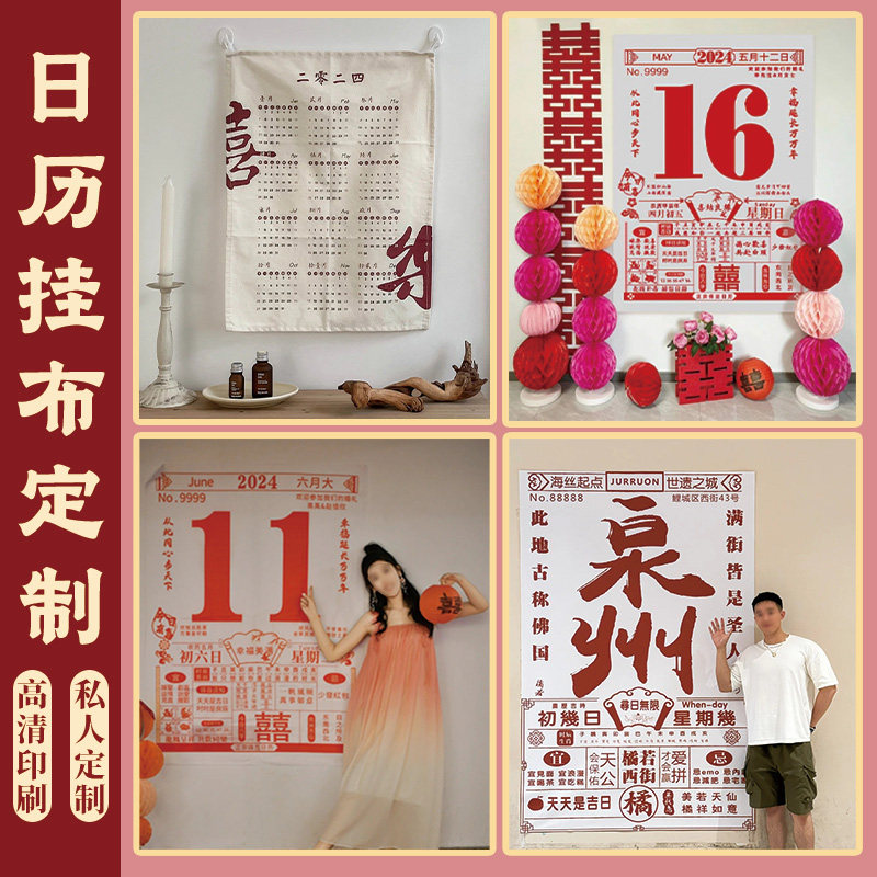 婚庆装饰日历背景布定制婚纱晨拍背景墙中式结婚订婚拍照喜字挂布