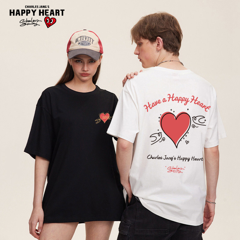 查尔斯桃心 短袖t恤男美式爱心字母印花夏季2026新款纯棉圆领半袖