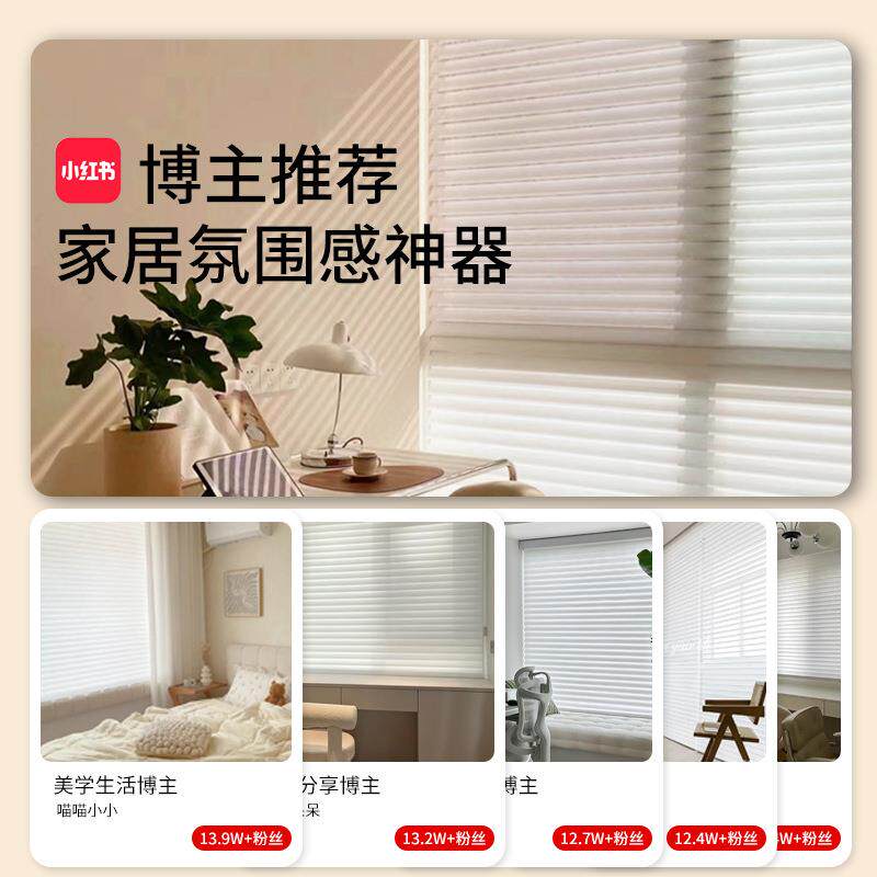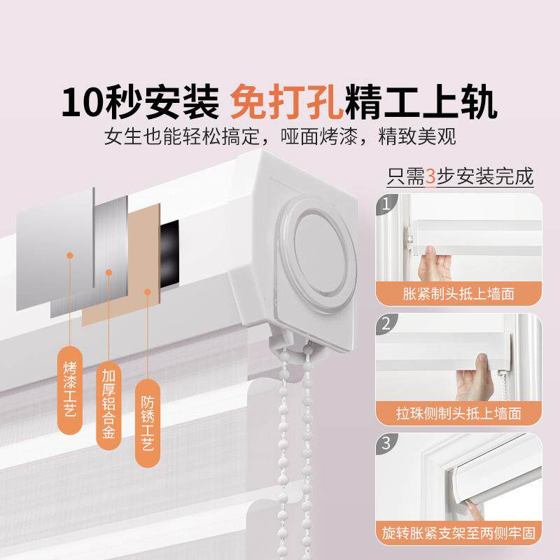 电动香格里拉窗帘柔纱百叶帘免打孔办公室卫生间客厅卧室遮光卷帘