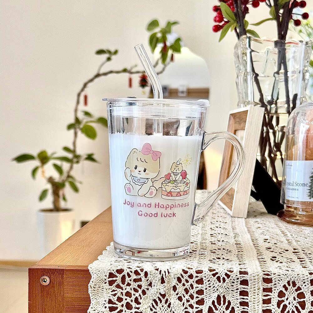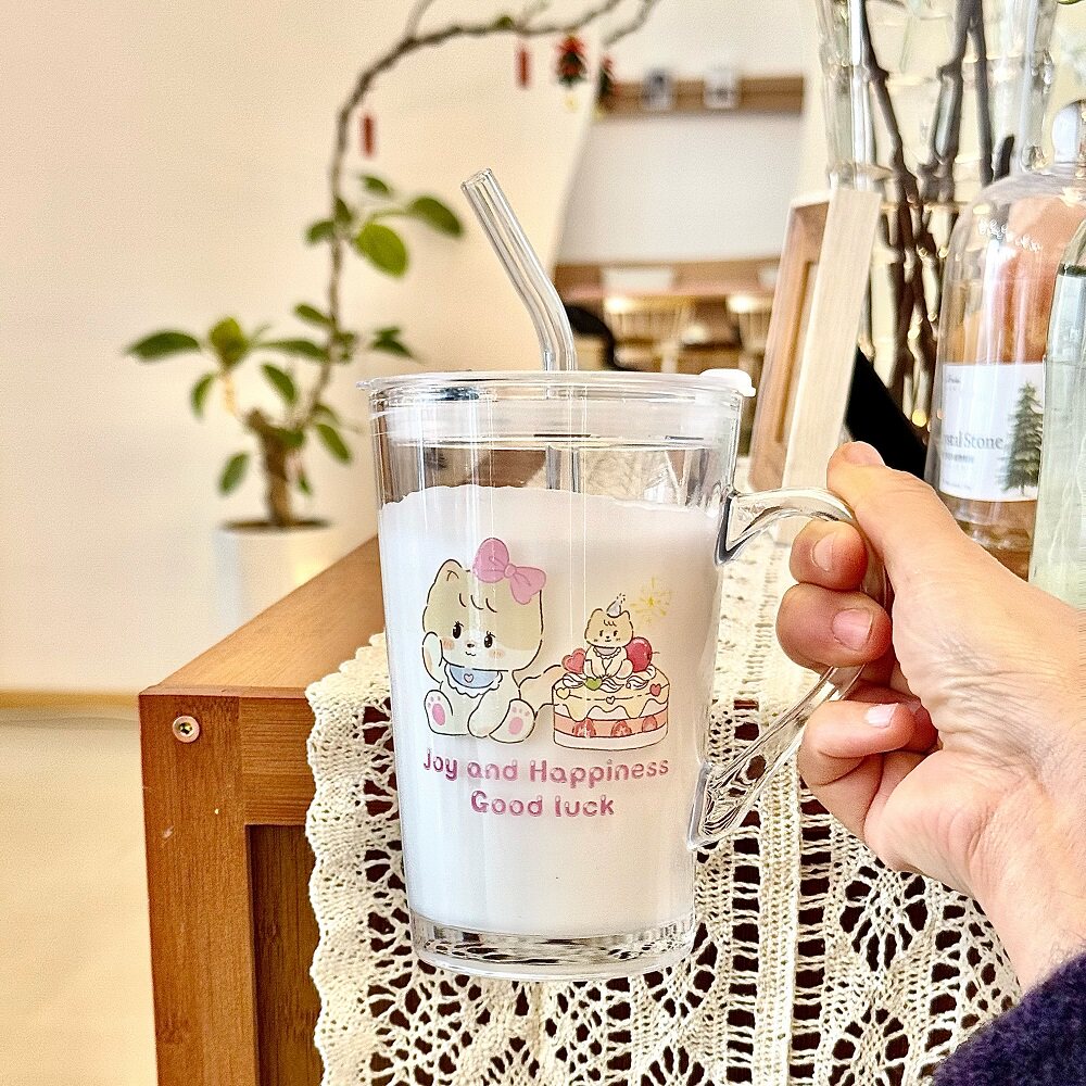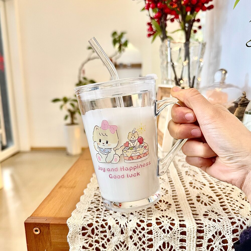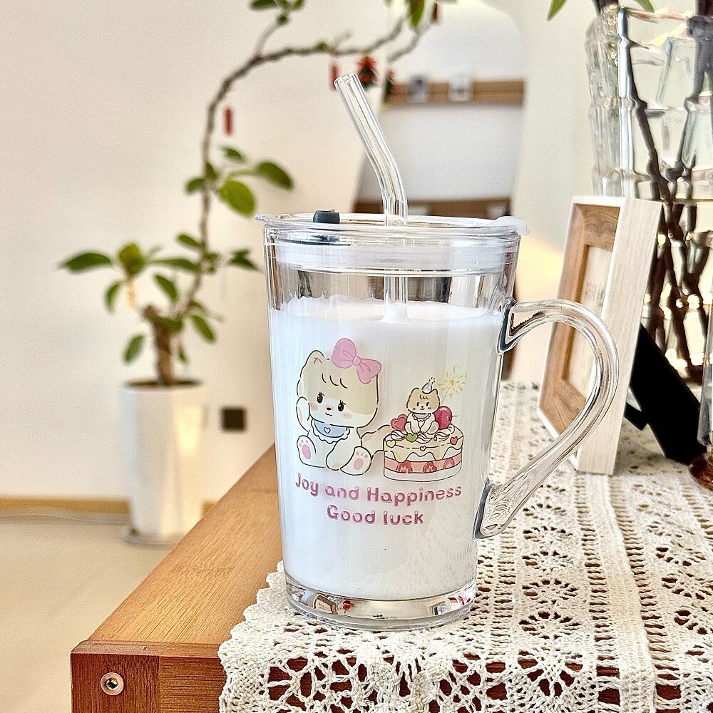可爱卡通玻璃杯大容量水杯2024新款女杯子办公室家用牛奶杯奶茶杯