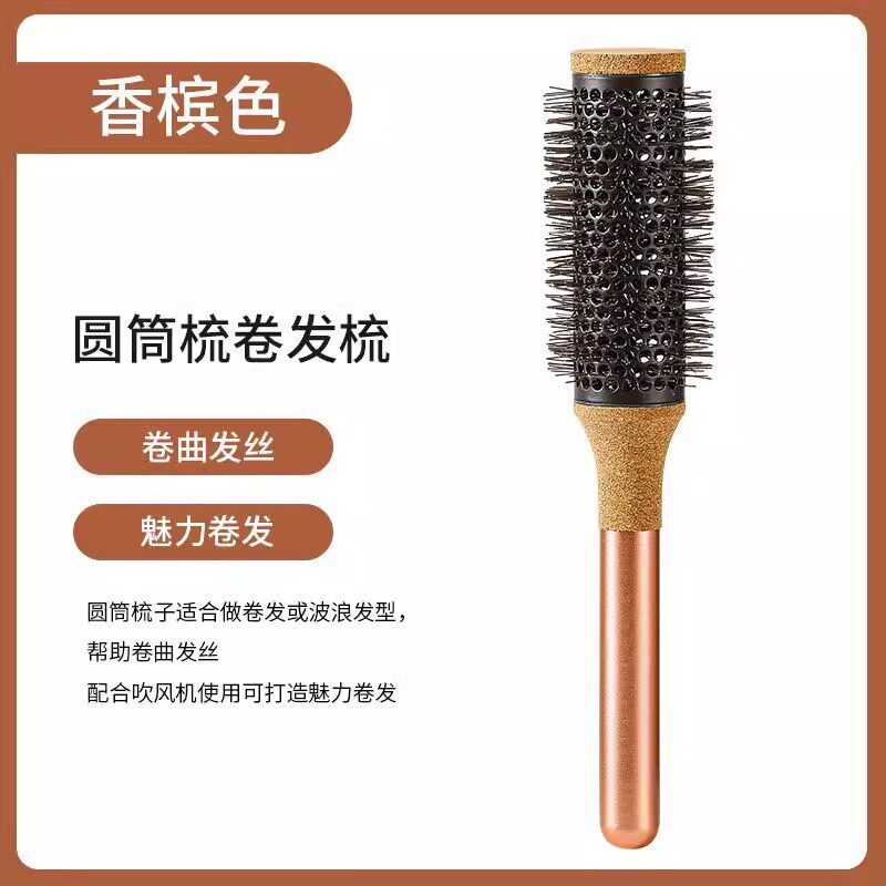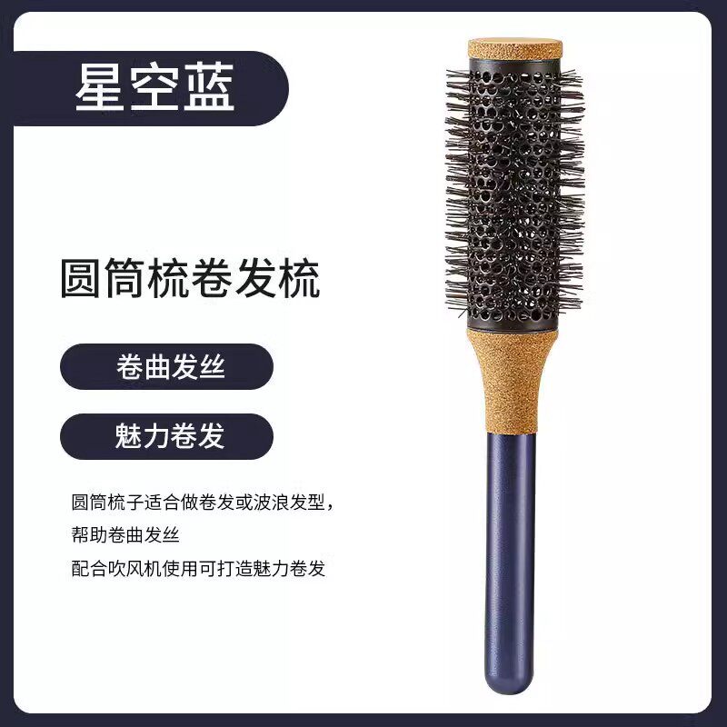发廊专业猪鬃毛卷长发梳子女士家用滚梳直发内扣梨花圆筒受热木男