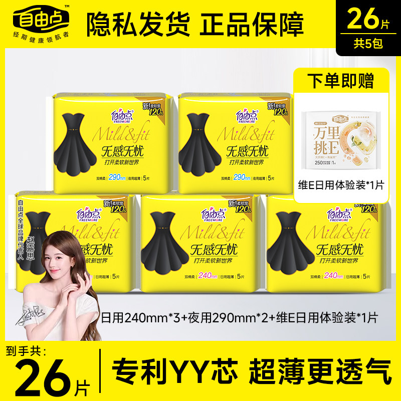自由点卫生巾日用夜用无感姨妈巾官方旗舰店正品棉柔亲肤超薄无忧