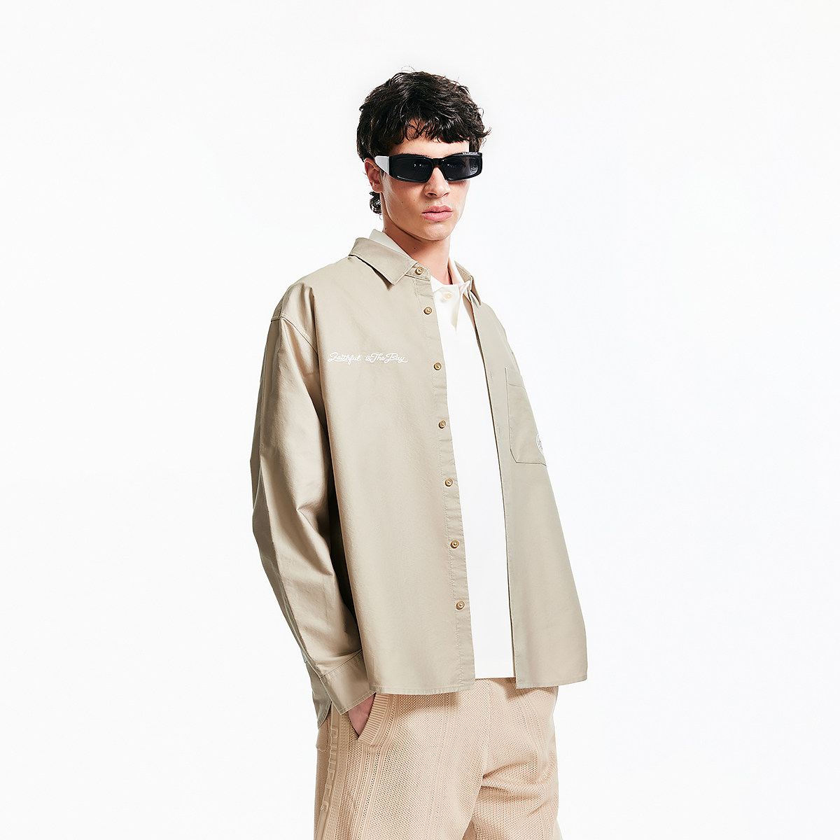 森马长袖衬衫男宽松工装外套情侣款纯色百搭上衣纯棉秋装潮酷流行