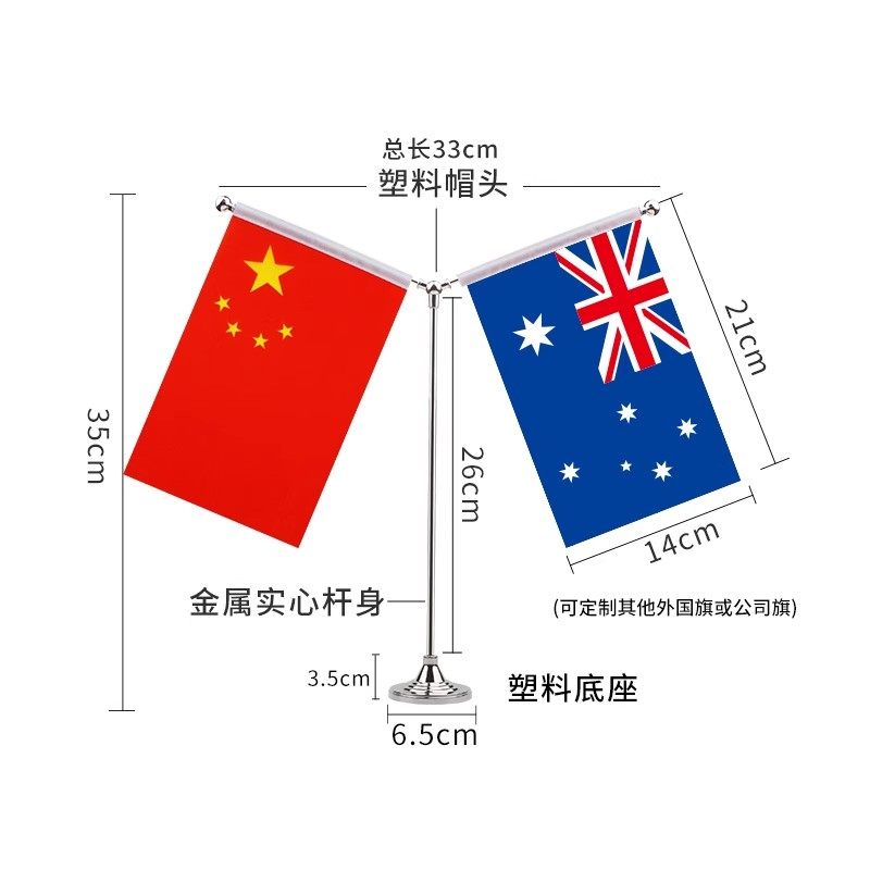 中国澳大利亚桌旗国旗摆件谈判签字约双杆Y型会议室办公杆台装饰