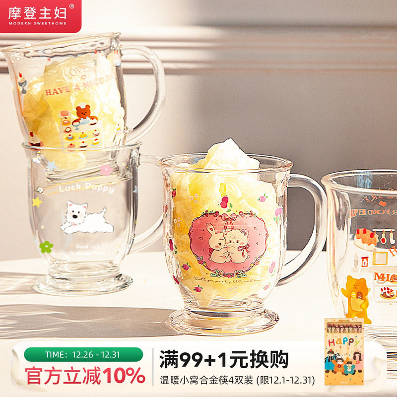 可爱卡通玻璃杯大容量水杯2024新款女杯子办公室家用牛奶杯奶茶杯
