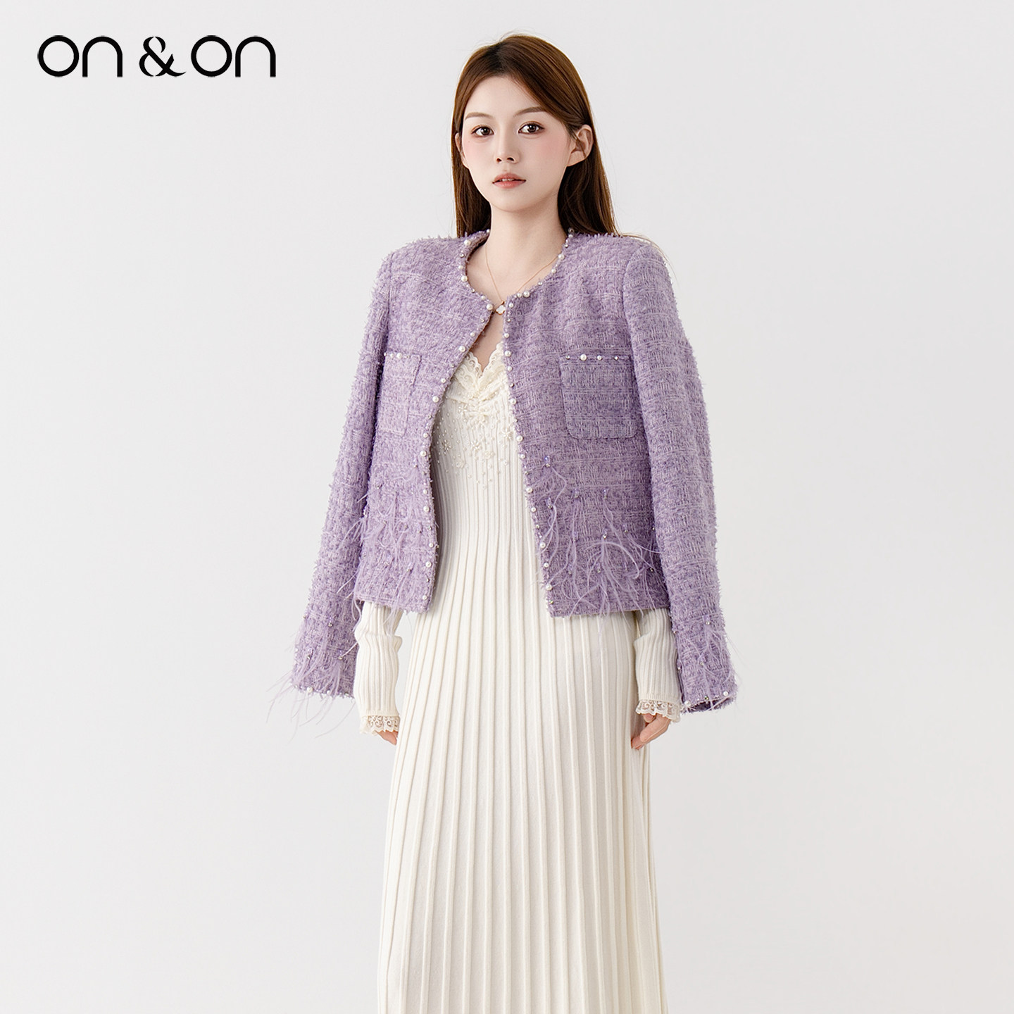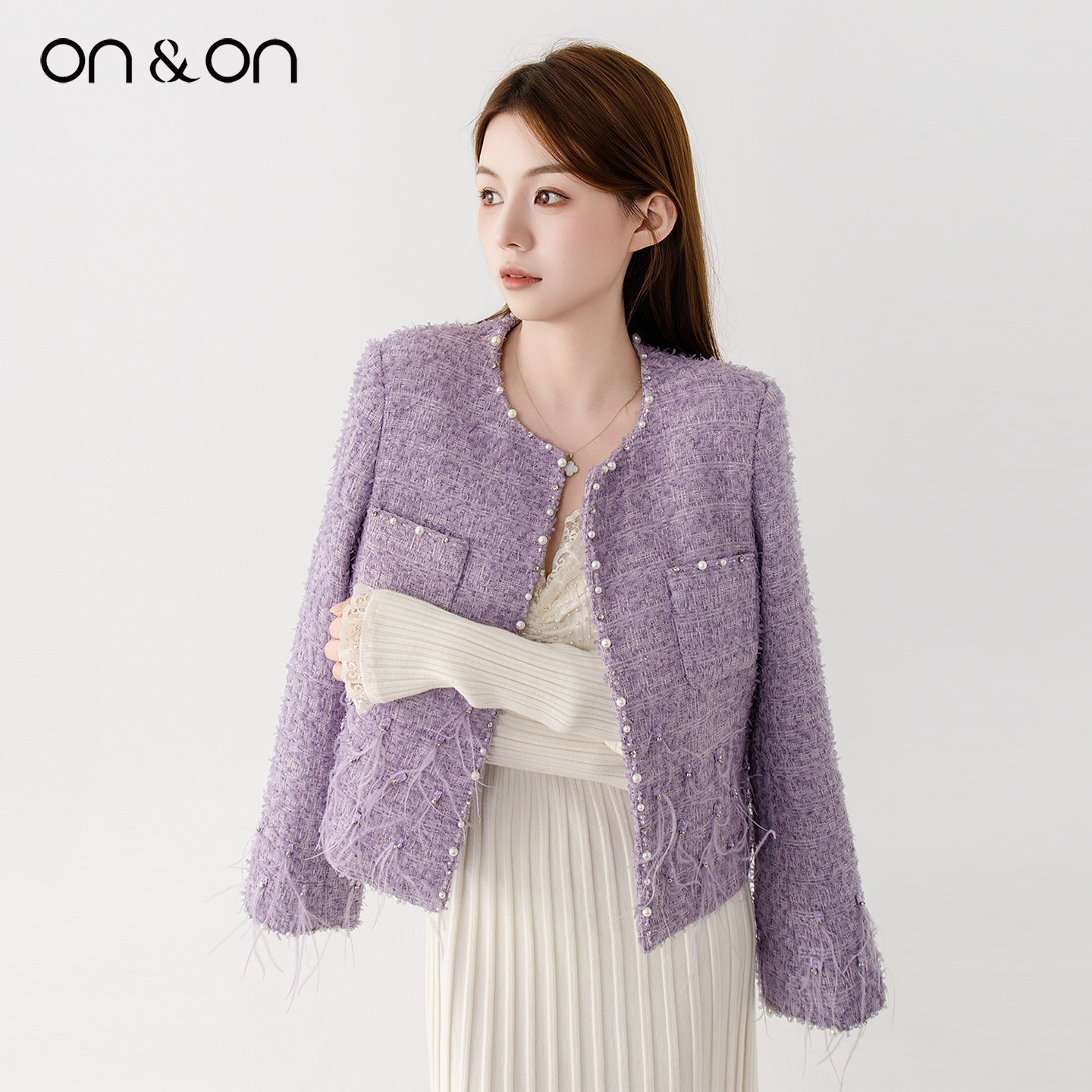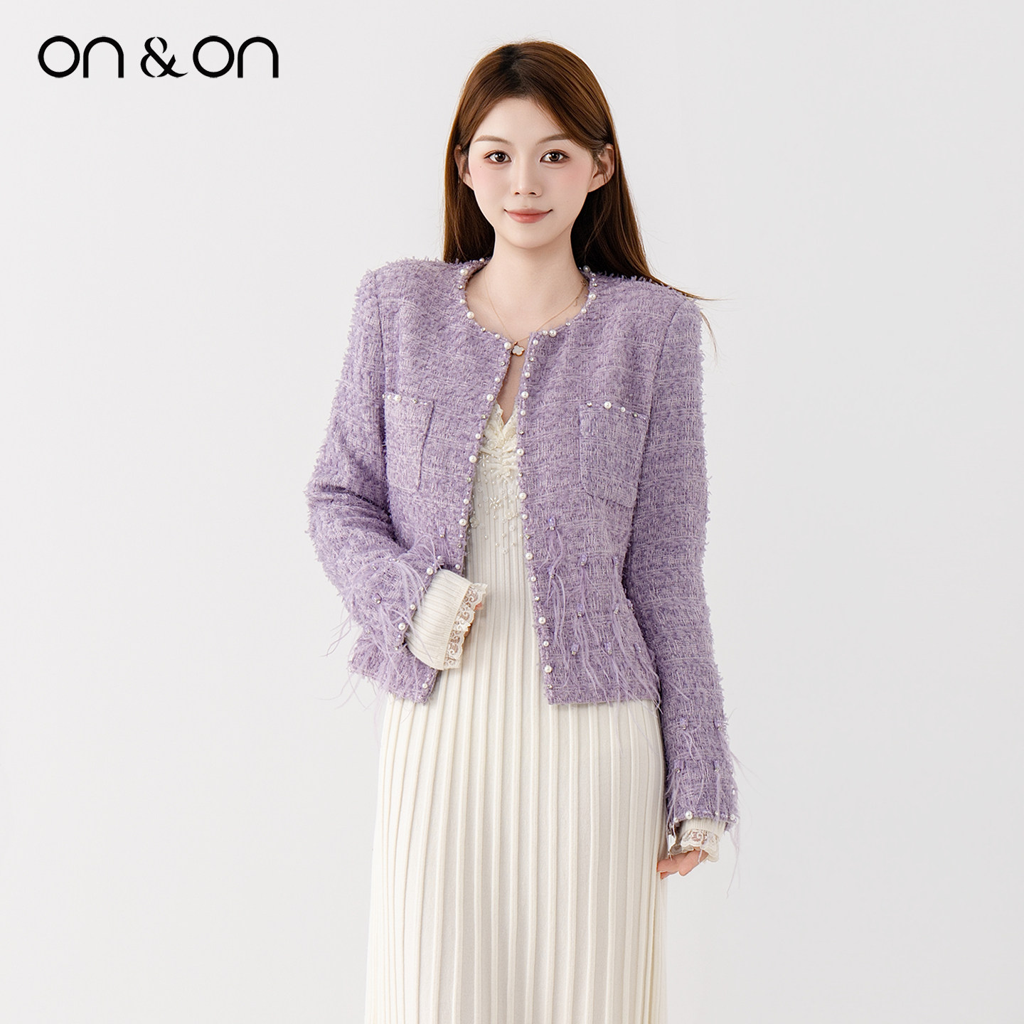 ON&ON/安乃安2025冬季新款法式手工钉珠时尚轻奢复古小香风外套