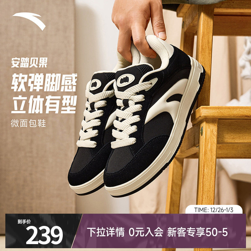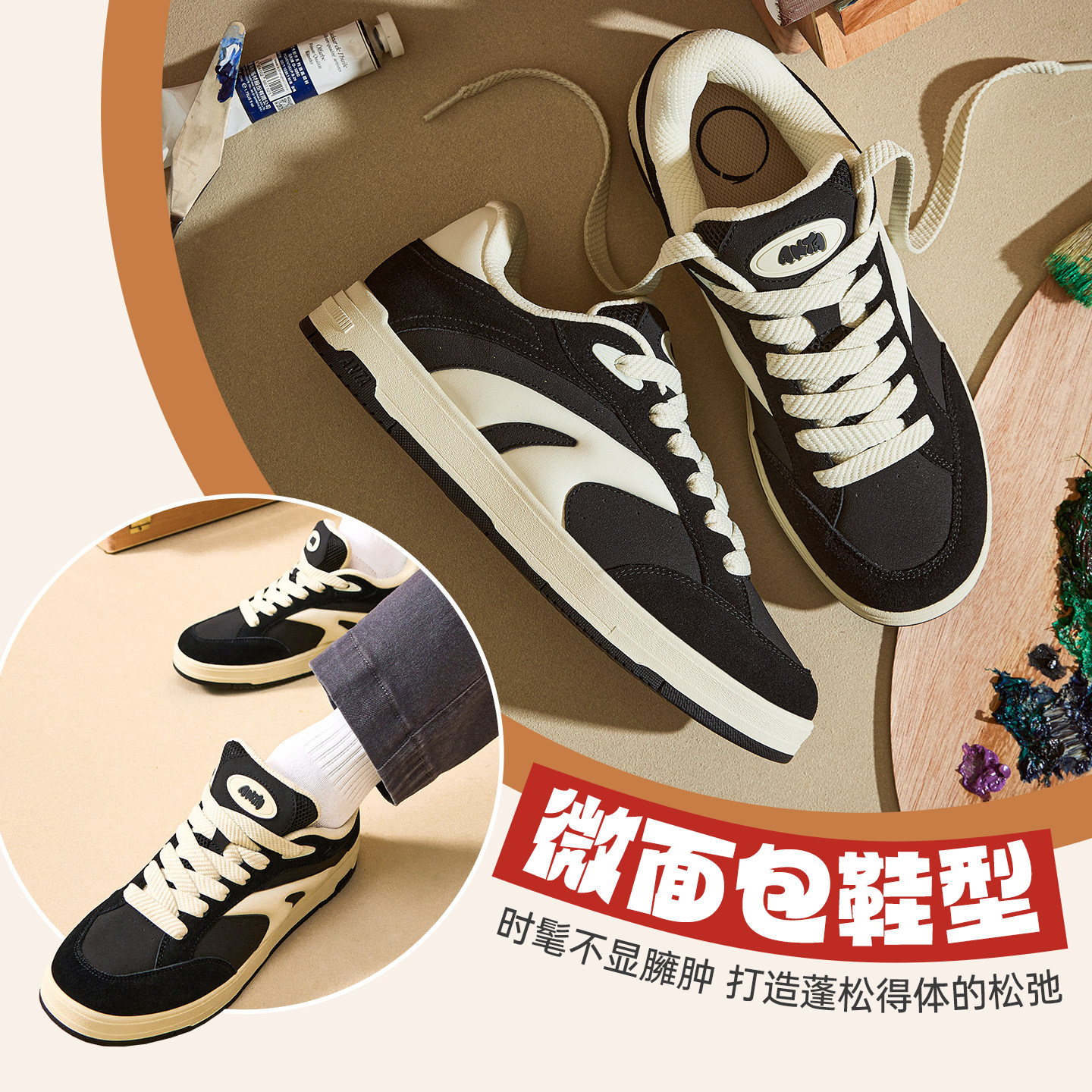 安踏贝果鞋板鞋男鞋2025冬季新款黑白低帮时尚休闲鞋百搭运动鞋男