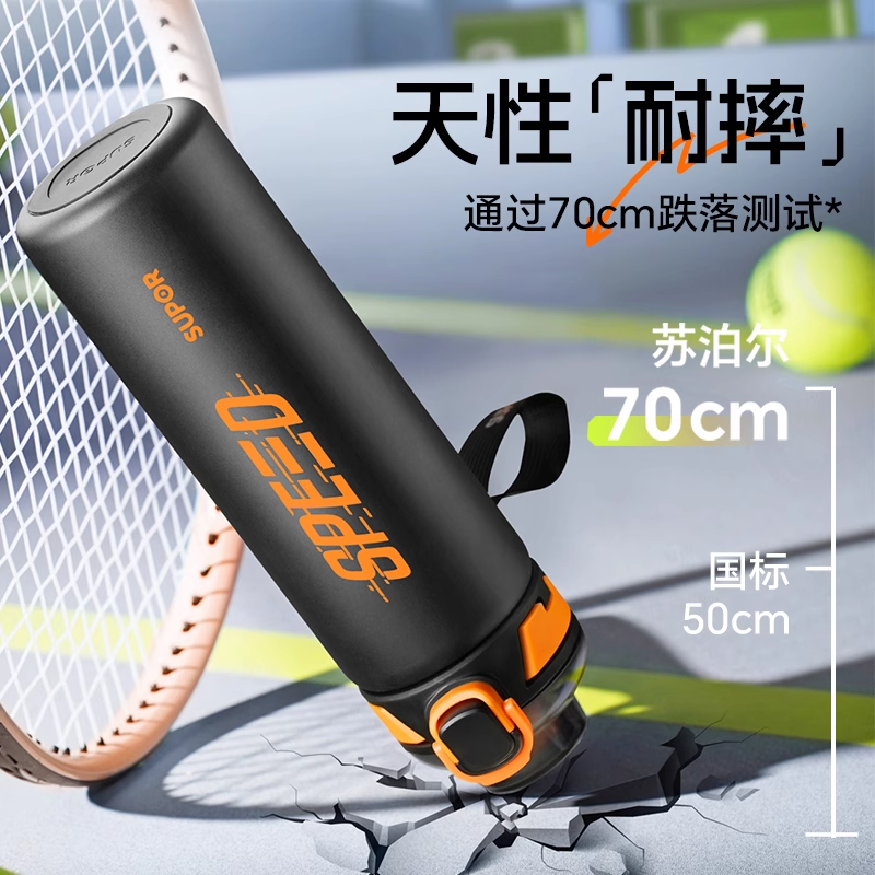 苏泊尔保温杯户外运动大容量双饮杯耐磨防摔不锈钢男款学生吸管杯