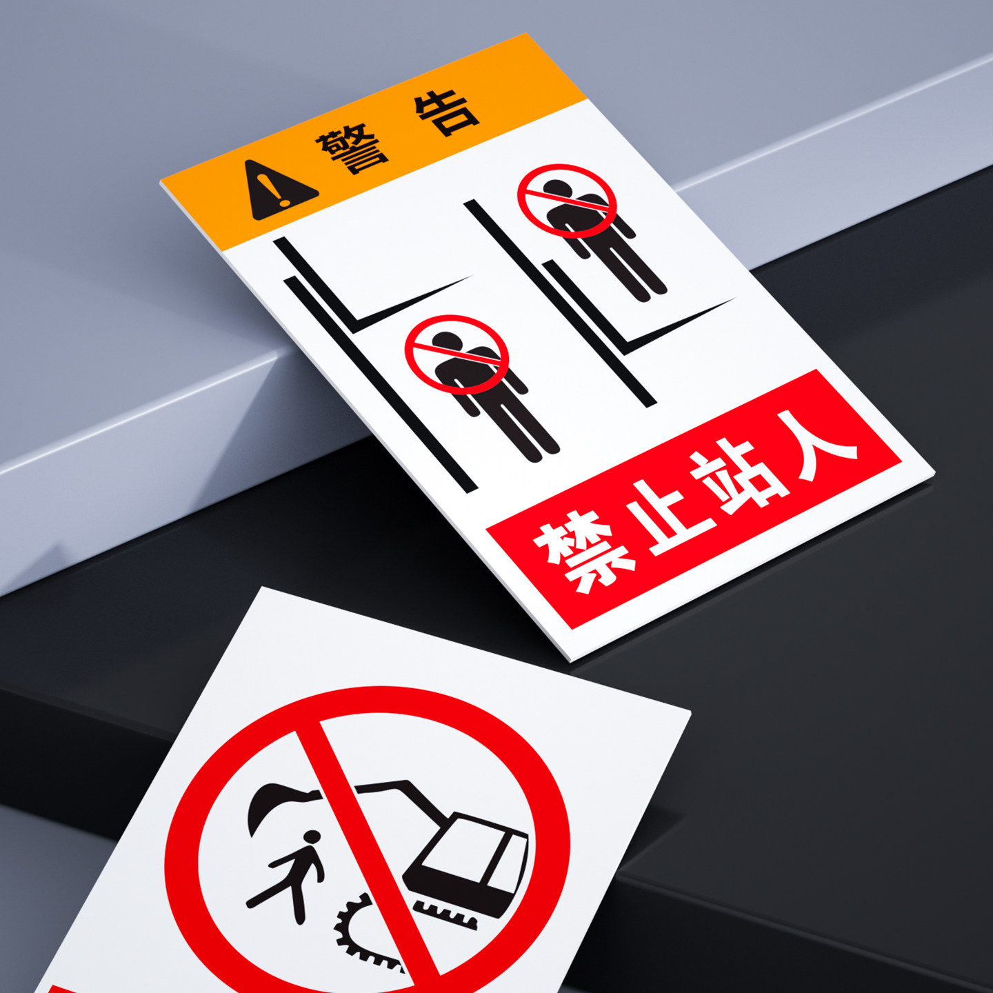 严禁站人标识牌设备运行区域禁止停留安全警示贴纸叉车作业区禁止靠近安全贴高空吊物作业必须戴安全帽警告牌