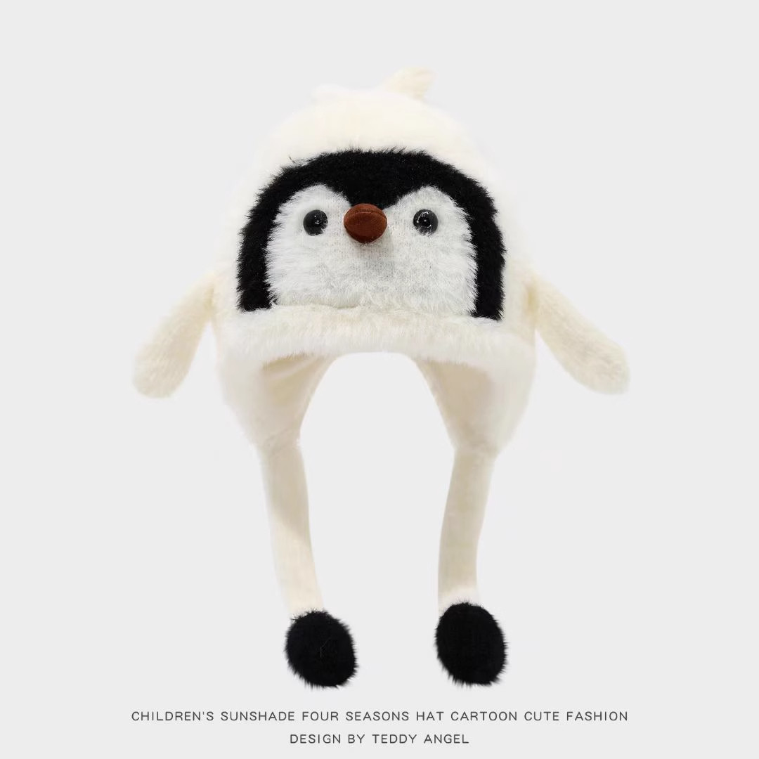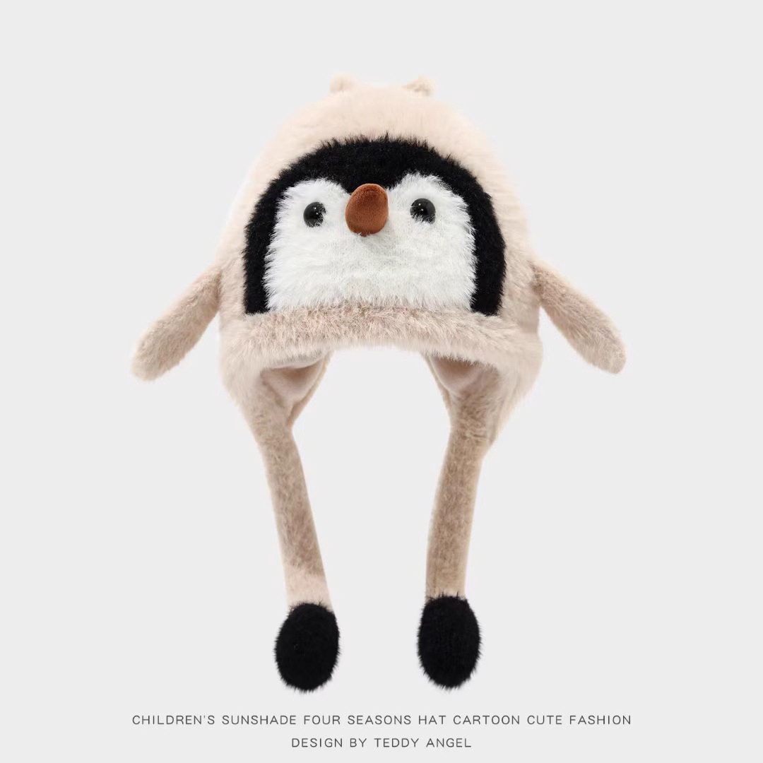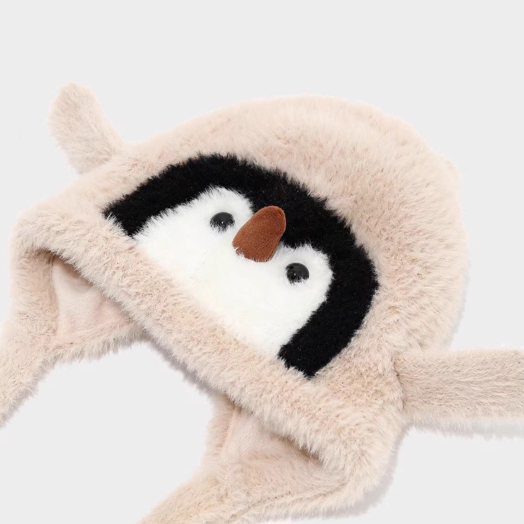 尼多熊婴儿帽子秋围脖一体宝宝毛绒帽防风护耳帽冬季保暖婴幼儿帽