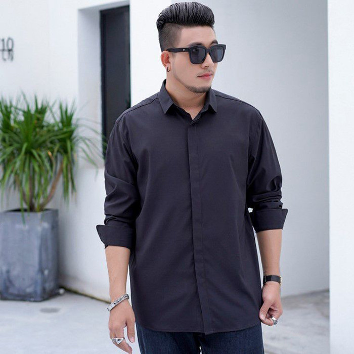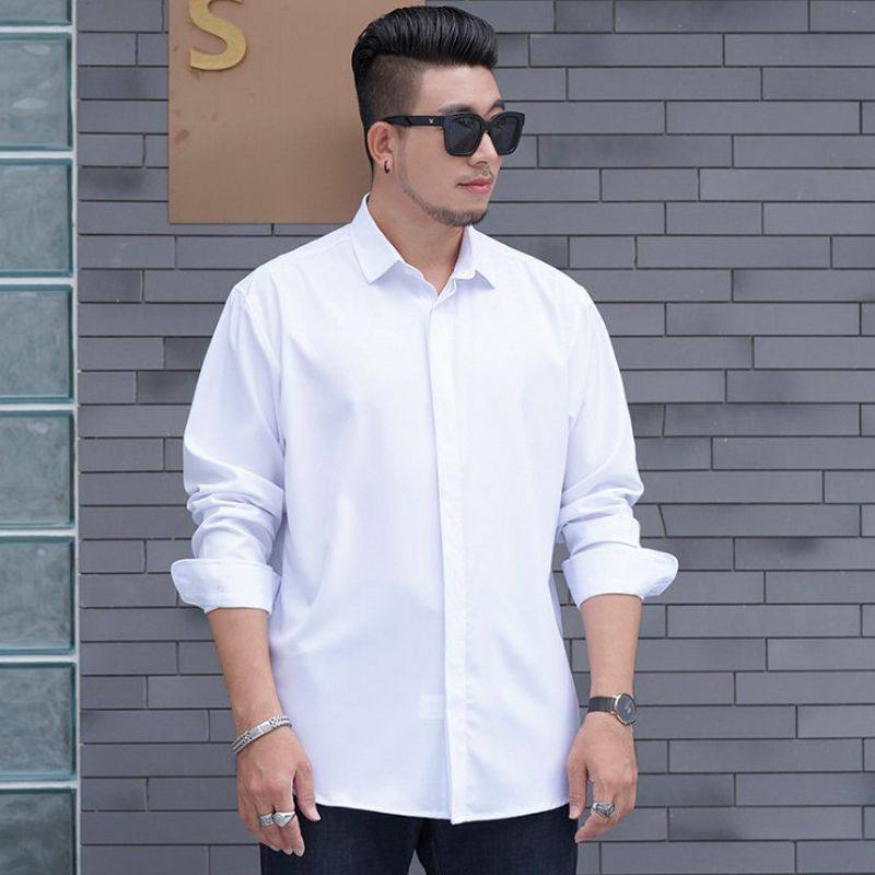 高弹力衬衫男士长短袖宽松胖子加肥加大码商务免烫套头白衬衣百搭
