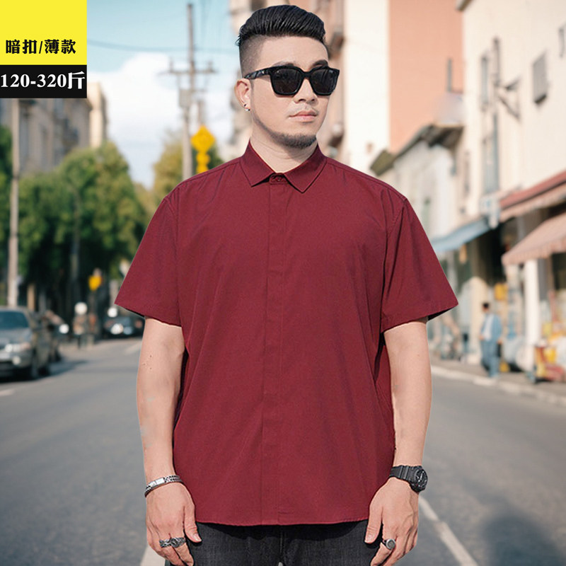 大码白衬衫男士300斤胖子肥佬短袖衬衣加肥加大商务特大宽休闲潮