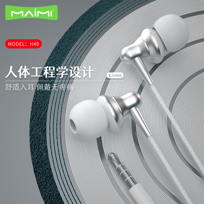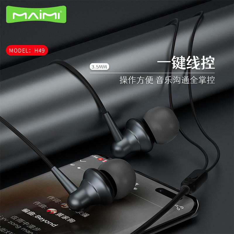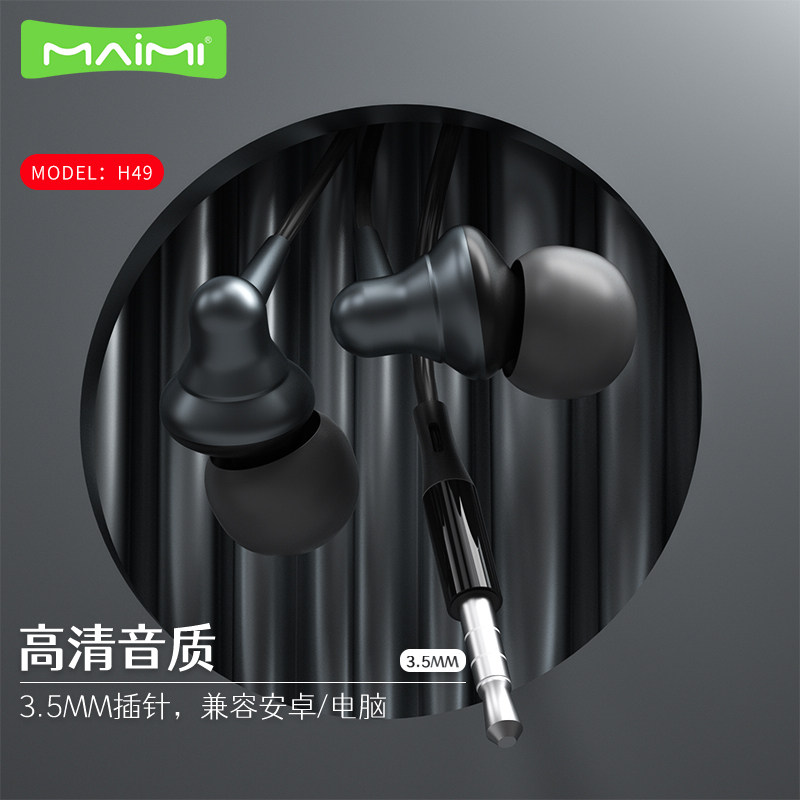 麦靡H49入耳式HIFI高清音质适用3.5mm孔听歌降噪即插即用线控耳机