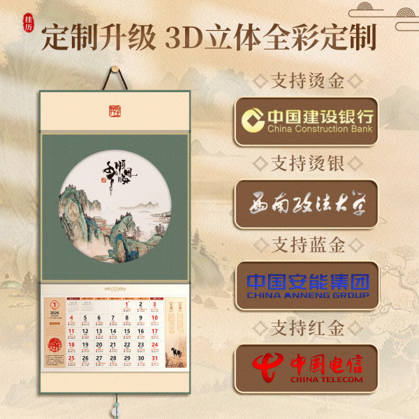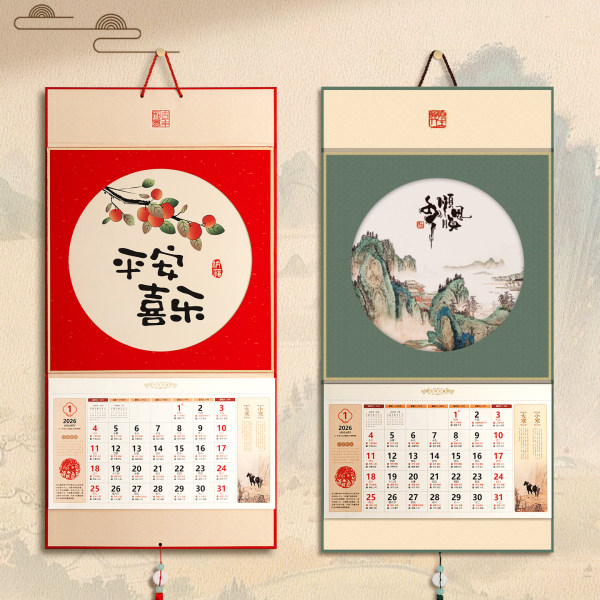 国风山水画日历2026年马年新款挂历大号加大加厚客厅装饰画家用挂墙式高档月历创意吊牌企业商务定制公司logo