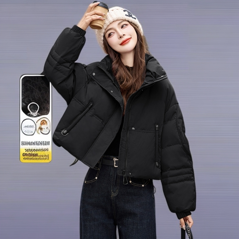户外短款羽绒服女小个子冬装2025新款韩版时尚立领白鸭绒外套高端