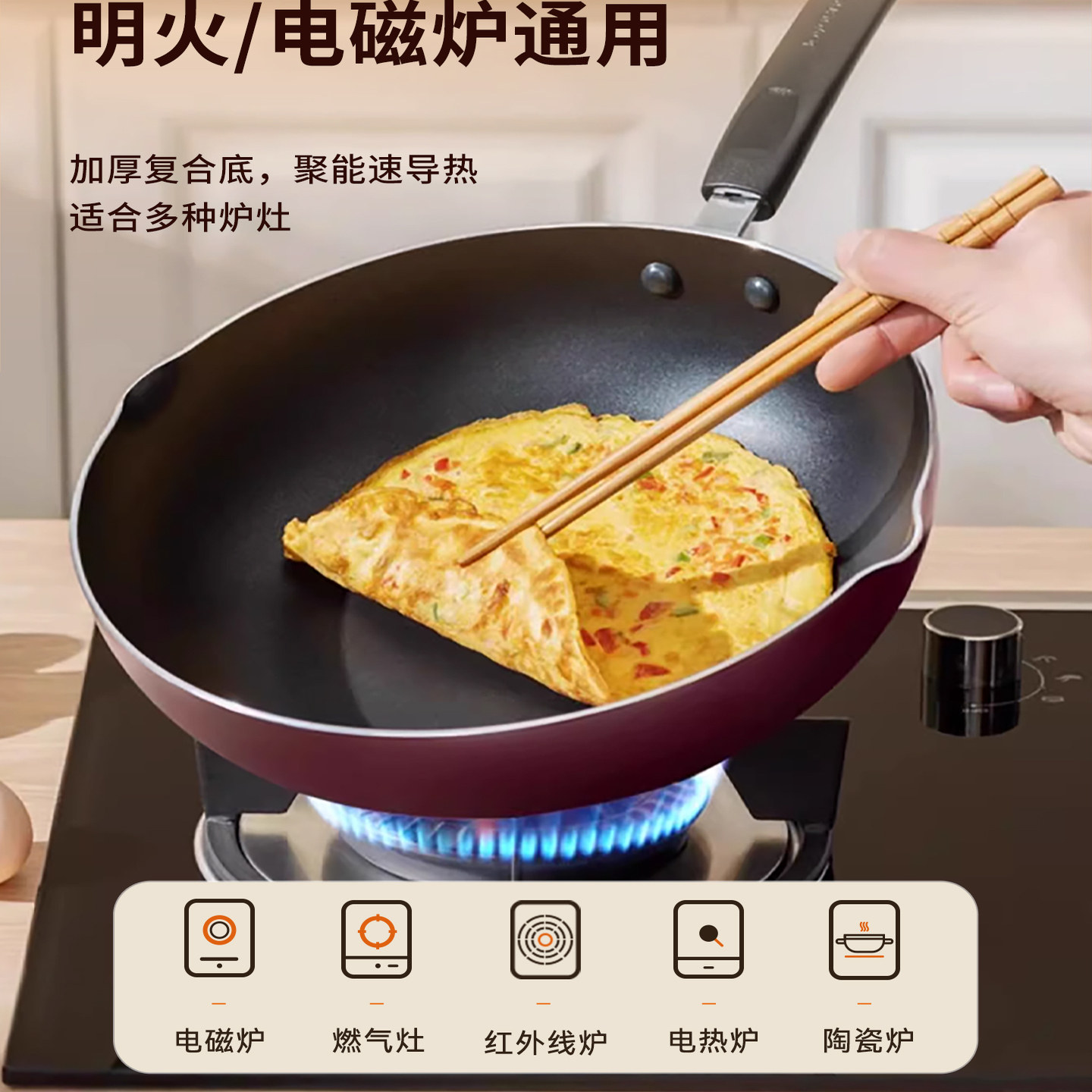 九阳不粘锅炒锅家用炒菜锅电磁炉专用燃气灶煤气灶平底锅适用锅具