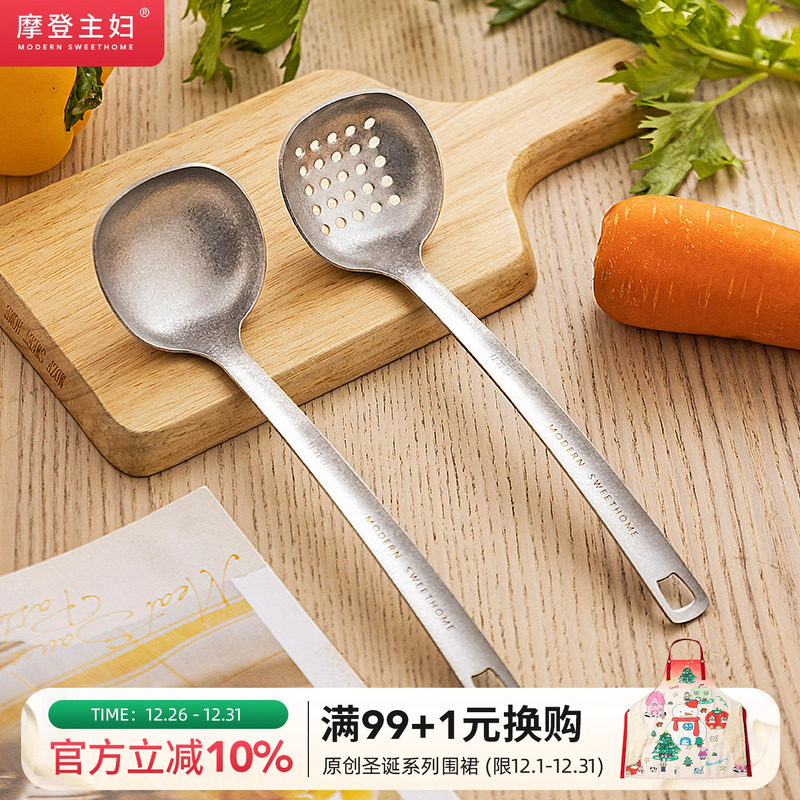 摩登主妇纯钛汤勺家用高档精致长柄大号火锅漏勺食品级盛汤粥勺子