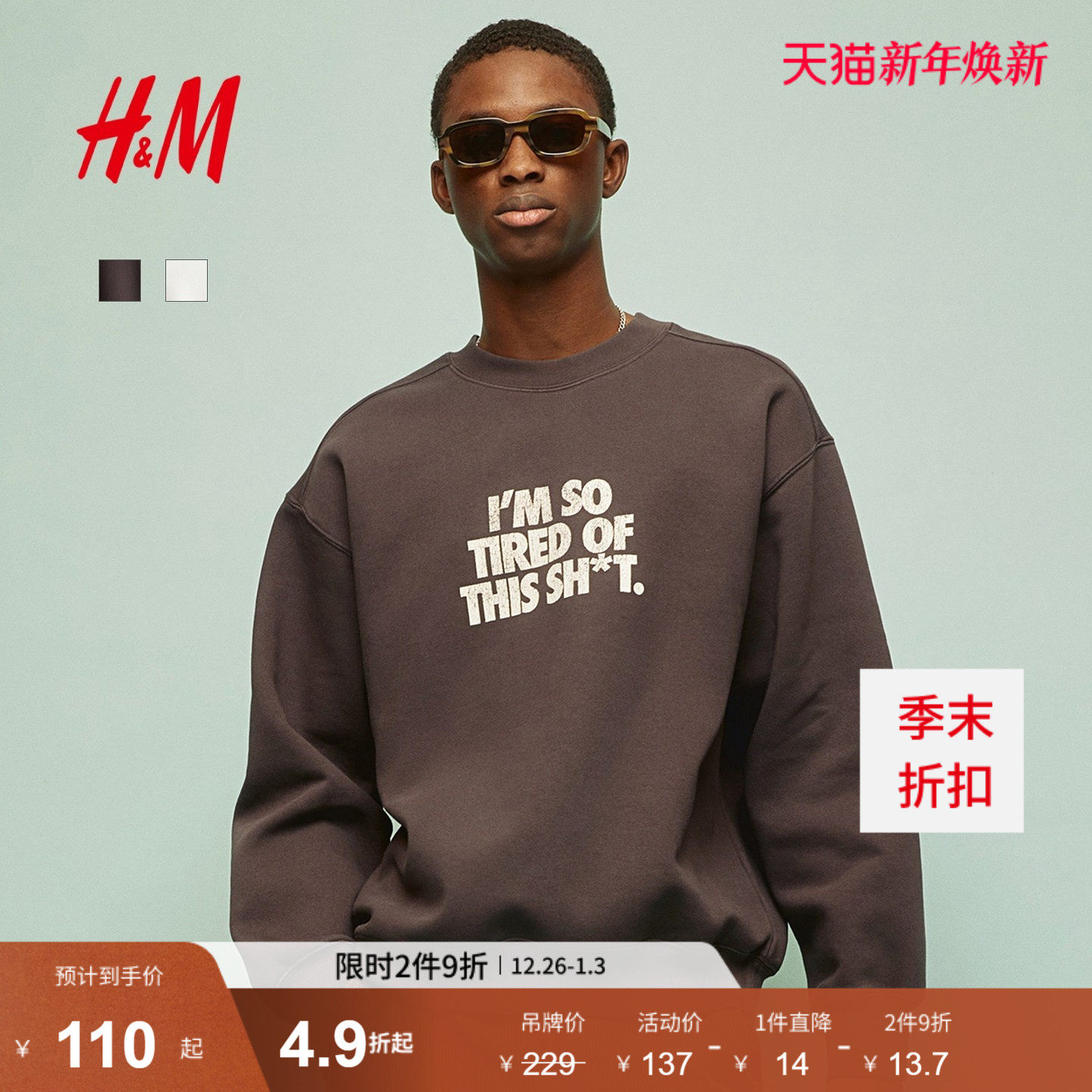 HM男装女装卫衣冬季款宽松加绒圆领套头长袖重磅情侣套衫1240532