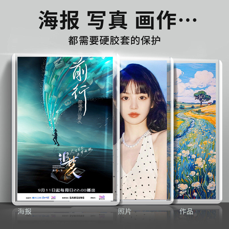 4K竖开硬胶套4k画纸硬胶套8开A3透明保护套文件明星海报奖状卡套pvc加厚加大画作保护套装纸540*390mm横向套