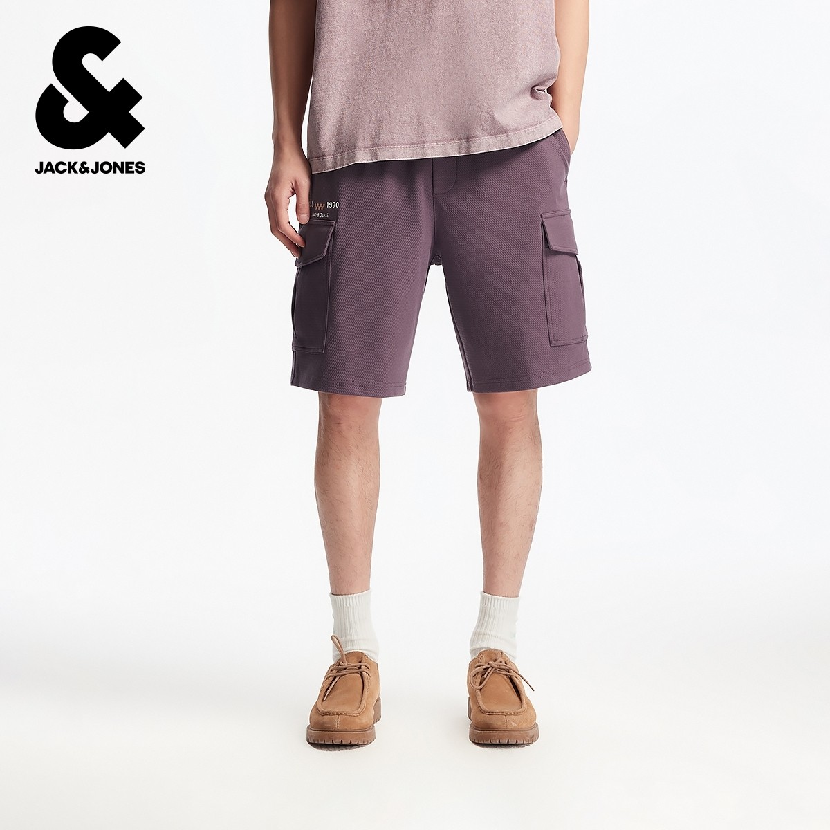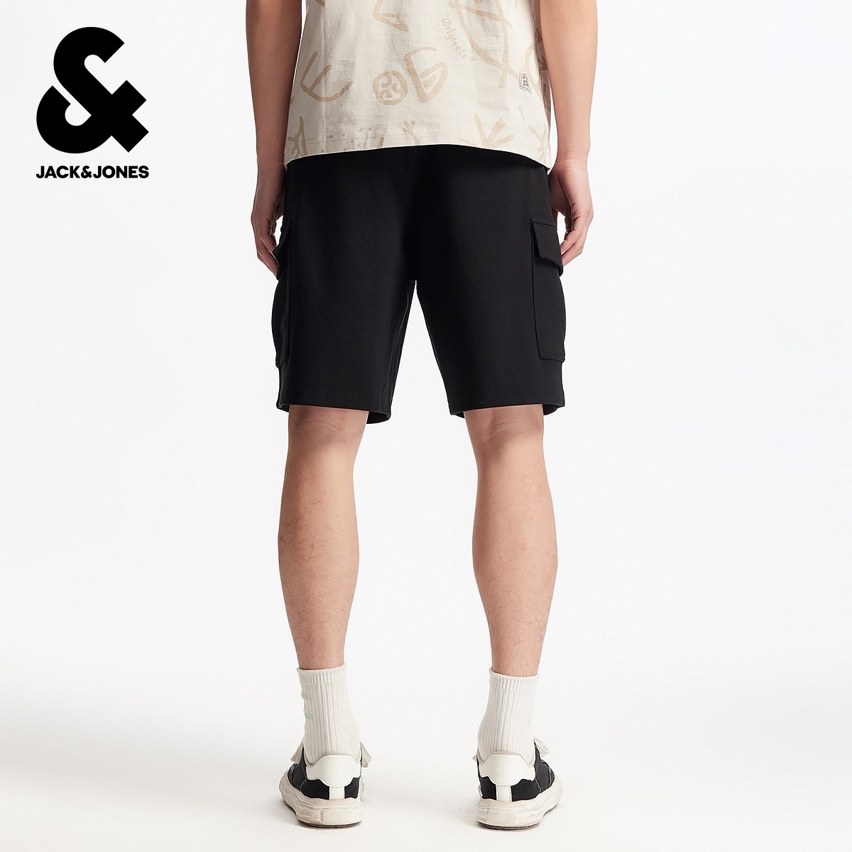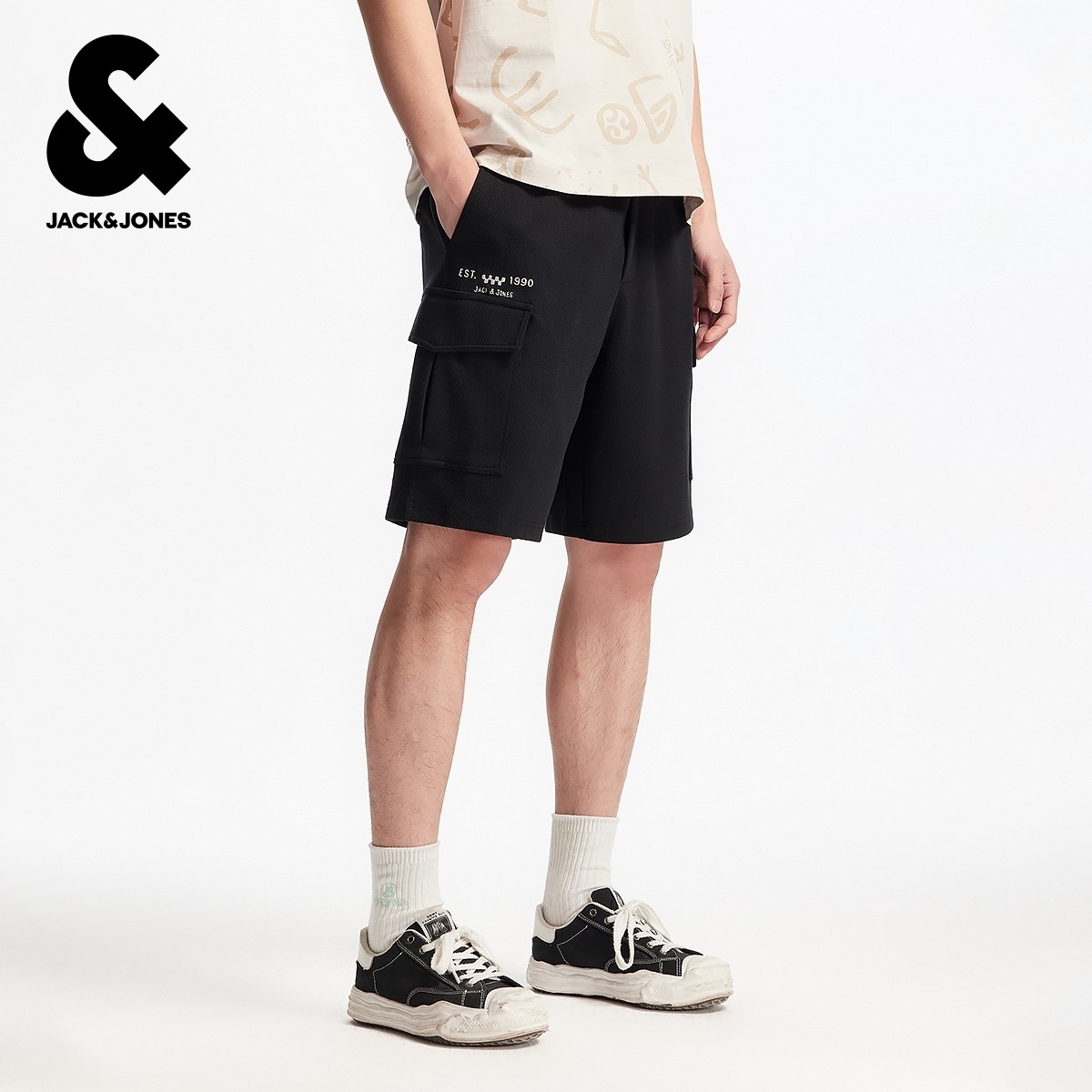 杰克琼斯奥特莱斯男装夏季新款时尚英文刺绣宽松休闲短裤子下装