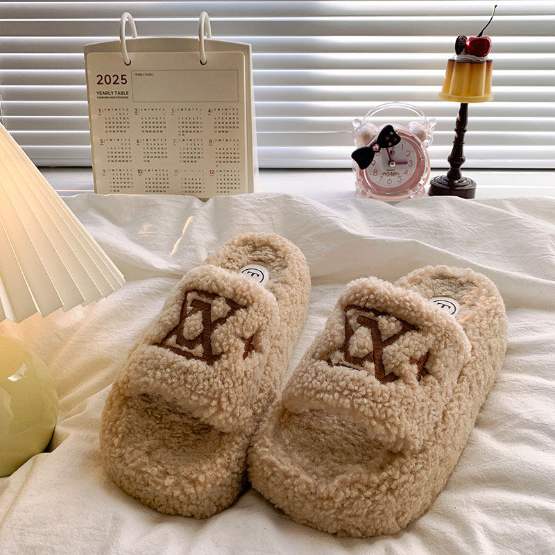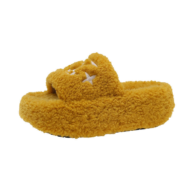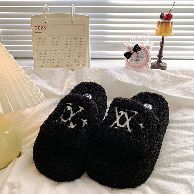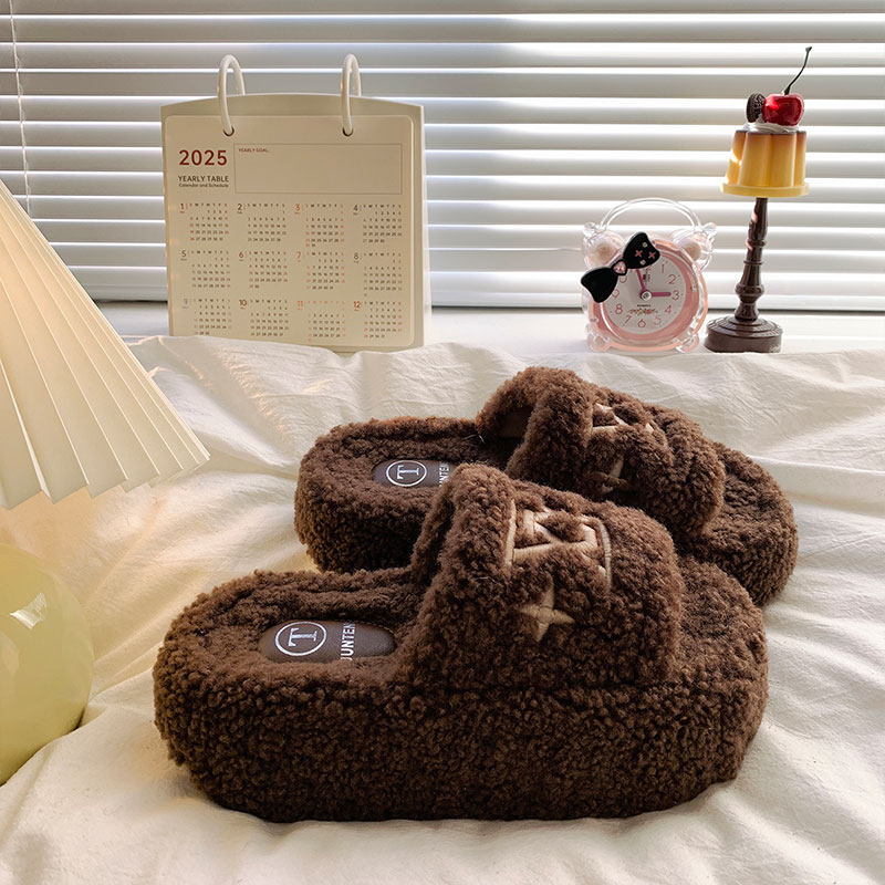 白鹿同款厚底增高毛毛鞋女2025秋季新款小个子时尚松糕棉拖鞋精品