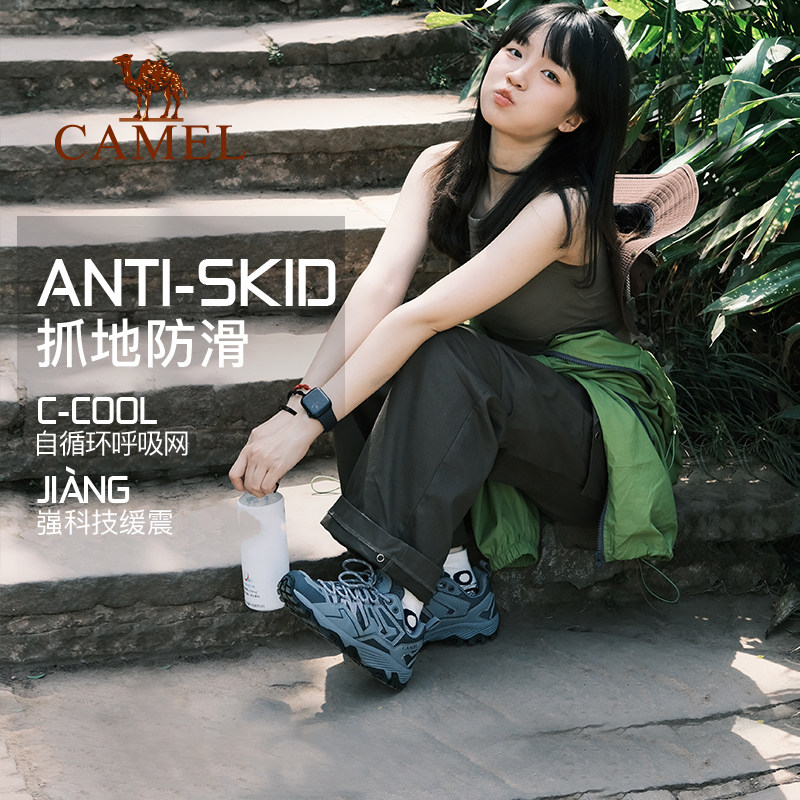 骆驼盘龙登山鞋女防滑秋冬户外透气网面耐磨轻便运动鞋男徒步鞋子