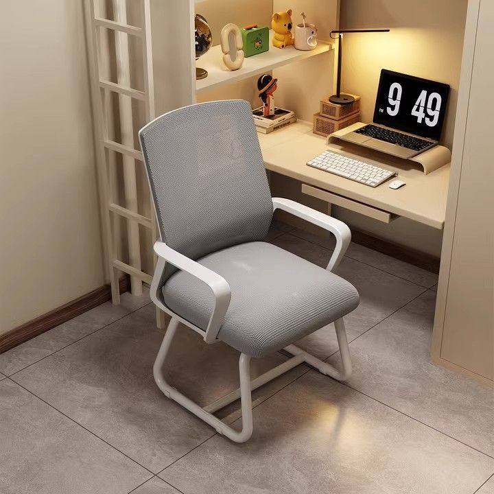电脑椅家用办公椅护腰舒适靠背椅弓形网布椅棋牌室椅子会议会客椅