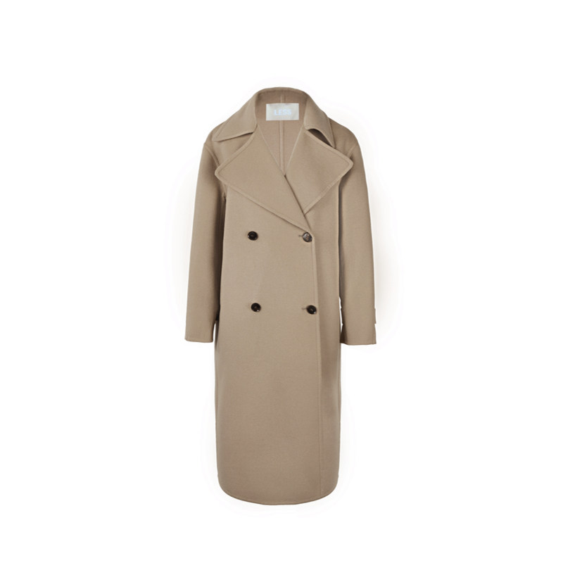 LESS冬季外套女长款风衣式双排扣双面羊毛呢大衣2MA810450