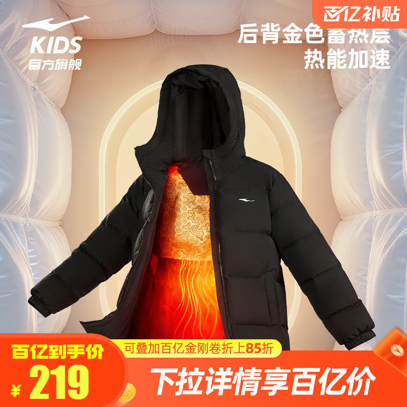 鸿星尔克童装儿童加厚羽绒服秋冬季男童保暖防水外套女童新款冬装