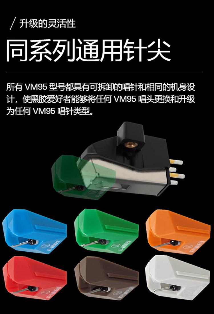 原装日本铁三角AT-VM95E MM动磁椭圆钻石针尖黑胶唱头VMN95E唱针