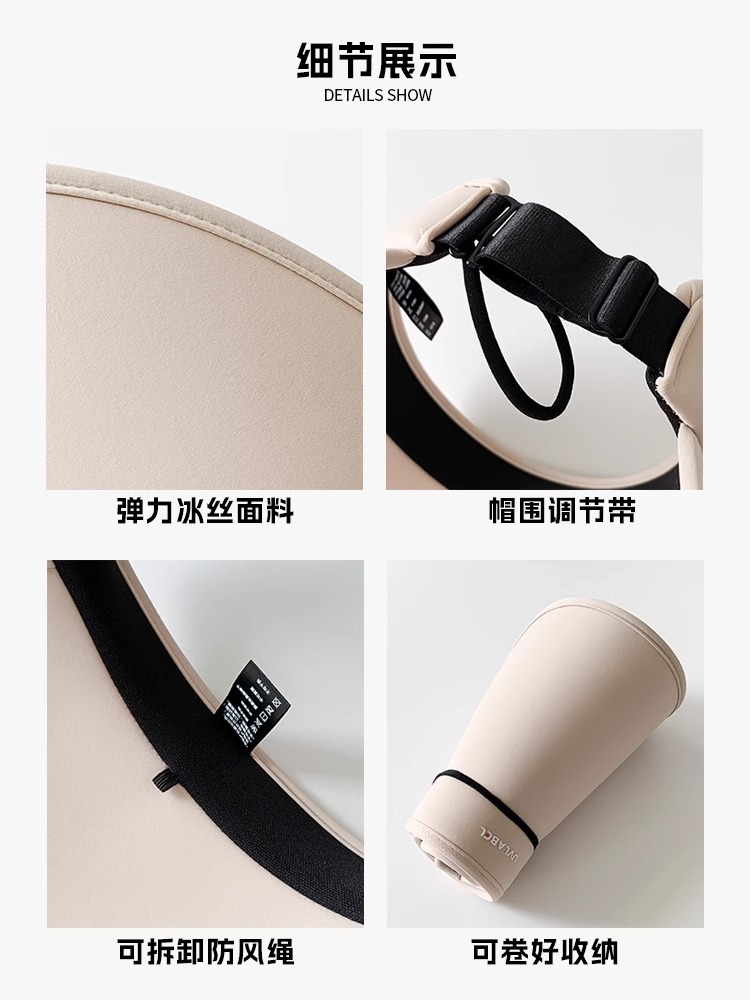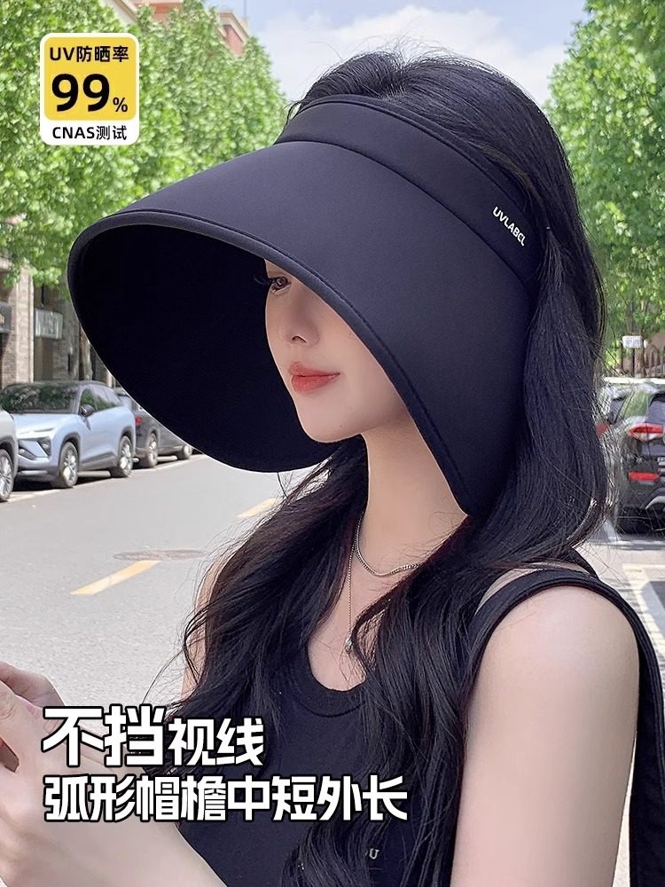防晒帽女大帽檐空顶遮阳帽防紫外线冰丝太阳帽防风显脸小速干护耳