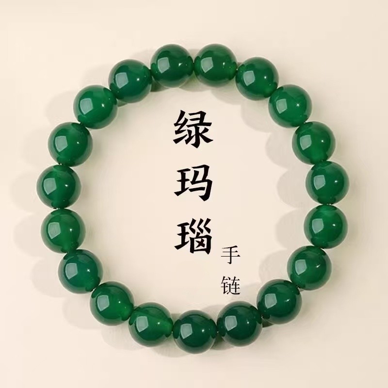 绿玛瑙手串女绿玉髓水晶手链转运珠情侣闺蜜礼物把玩念珠晶体桃花