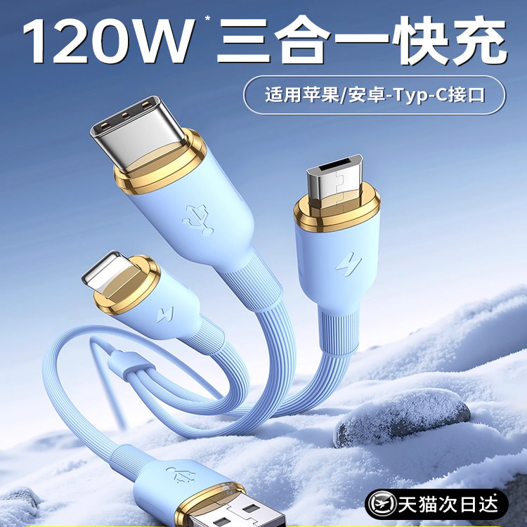 【国家3C认证】铂信适用苹果华为安卓120W三合一数据线超级快充线三头充电器线套装typec车载线一拖三多功能3