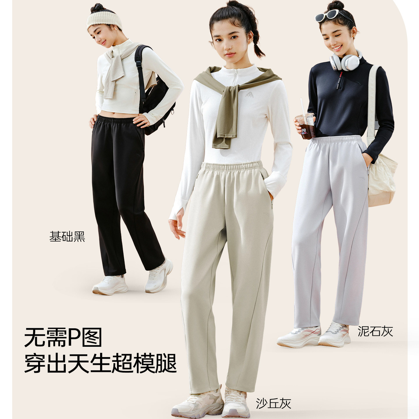 安踏自由裤丨通勤烟管裤无氟防泼水锥形裤加绒女裤冬季保暖运动裤